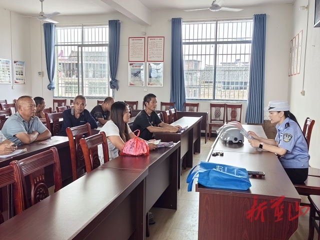 活动当天,在舜水村村委会,民警运用本地方言耐心地向村民们解读交通安全法律法规,结合农村地区常见的交通违法行为和本地案例,用通俗易懂的语言,重点阐述了骑乘摩托车、电动自行车佩戴安全头盔的重要性,引起村民的强烈共鸣。