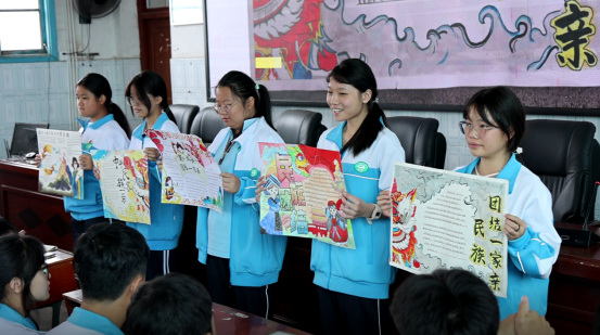 在庄严的重温入团誓词仪式后,副校长带来了一堂生动的主题团课,深入阐释了民族团结的重要意义。活动精彩纷呈:3名学生代表动情分享民族故事,展现多元文化魅力;民族知识竞赛环节气氛热烈,学生们在互动中增进了彼此了解;创意作品展示精彩不断,手抄报和绘画作品生动传递了民族团结的真情实感;县文化馆专家现场教授峒歌,为学生们带来沉浸式的民族文化体验。校长在对活动的点评中指出,本次活动充分展现了三中学子维护民族团结的自觉担当,希望全体同学以此次活动为契机,让民族团结之花在校园常开长盛。