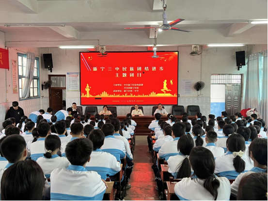 9月22日,新宁县第三中学隆重举行“石榴籽心连心,中华少年一家亲”民族团结主题团日活动。本次活动由中共新宁县委统战部、共青团新宁县委联合主办,180余名各族团员青年齐聚一堂,用青春之声唱响民族团结主旋律。
