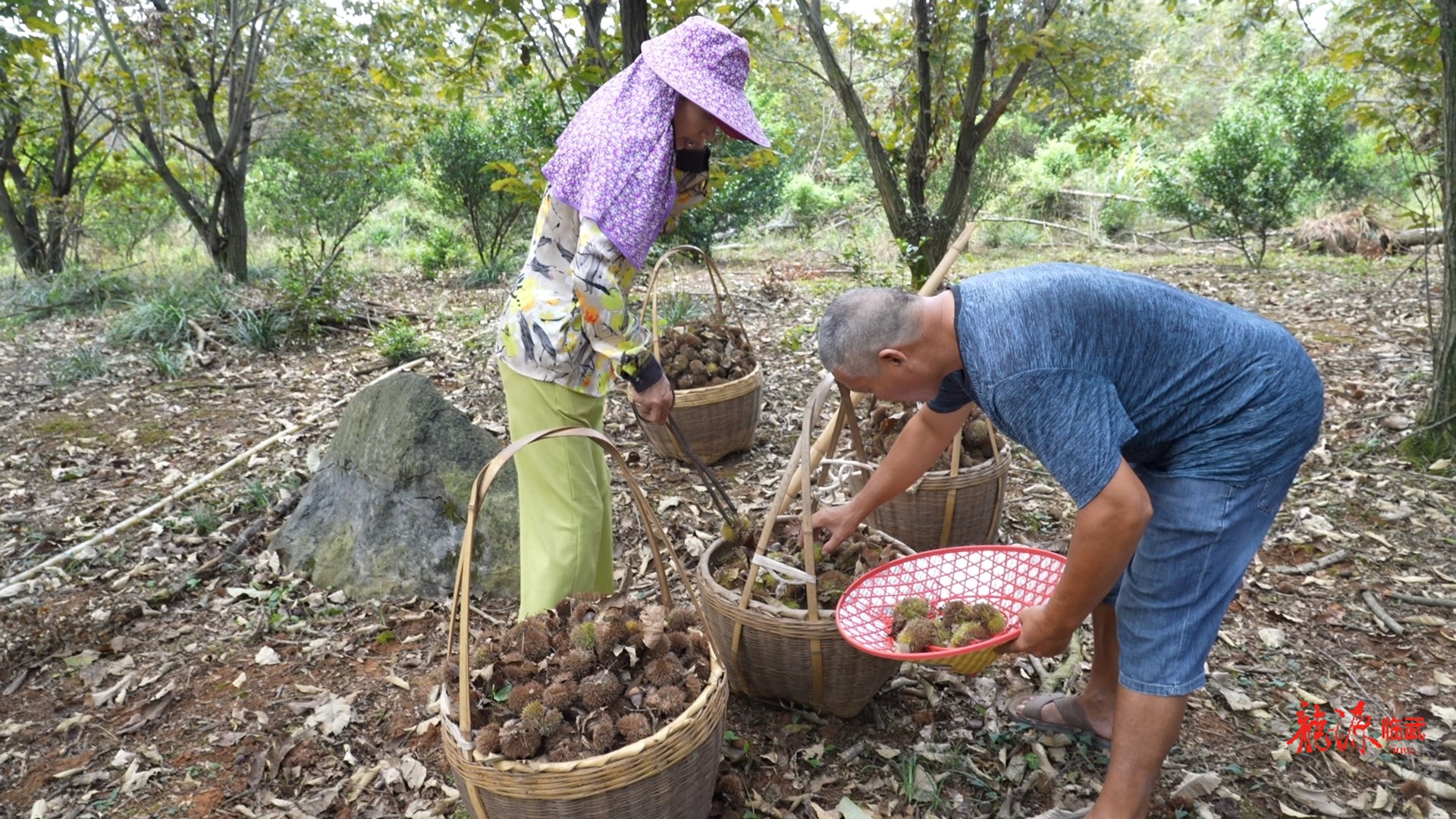 走进板栗林,丰收的喜悦扑面而来。村民们手持长竿,灵活、精准地敲打着成熟的栗球。随着“噼啪”的声响,栗球应声落下,一旁的村民则会熟练地弯腰捡拾。