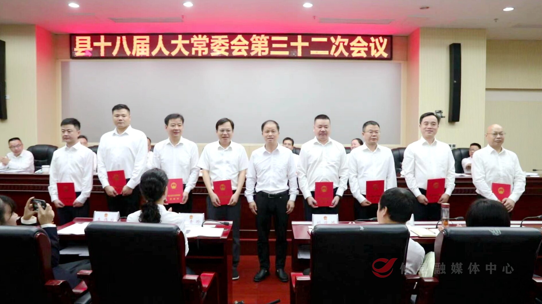 ▲县人大常委会主任冯杰为通过的新任职人员颁发任命书