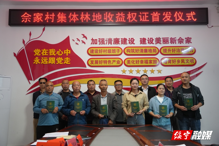 新绥宁客户端9月25日讯(记者 孙芳华 通讯员 海书山)9月25日,绥宁县集体林地收益权证首发仪式在长铺子苗族侗族乡佘家村举行。随着收益权证与分红款一同递到村民手中,标志着当地以“三权分置”破解集体林地改革难题的试点取得实质性突破,让“林地归集体、收益难到账”的困境成为历史。