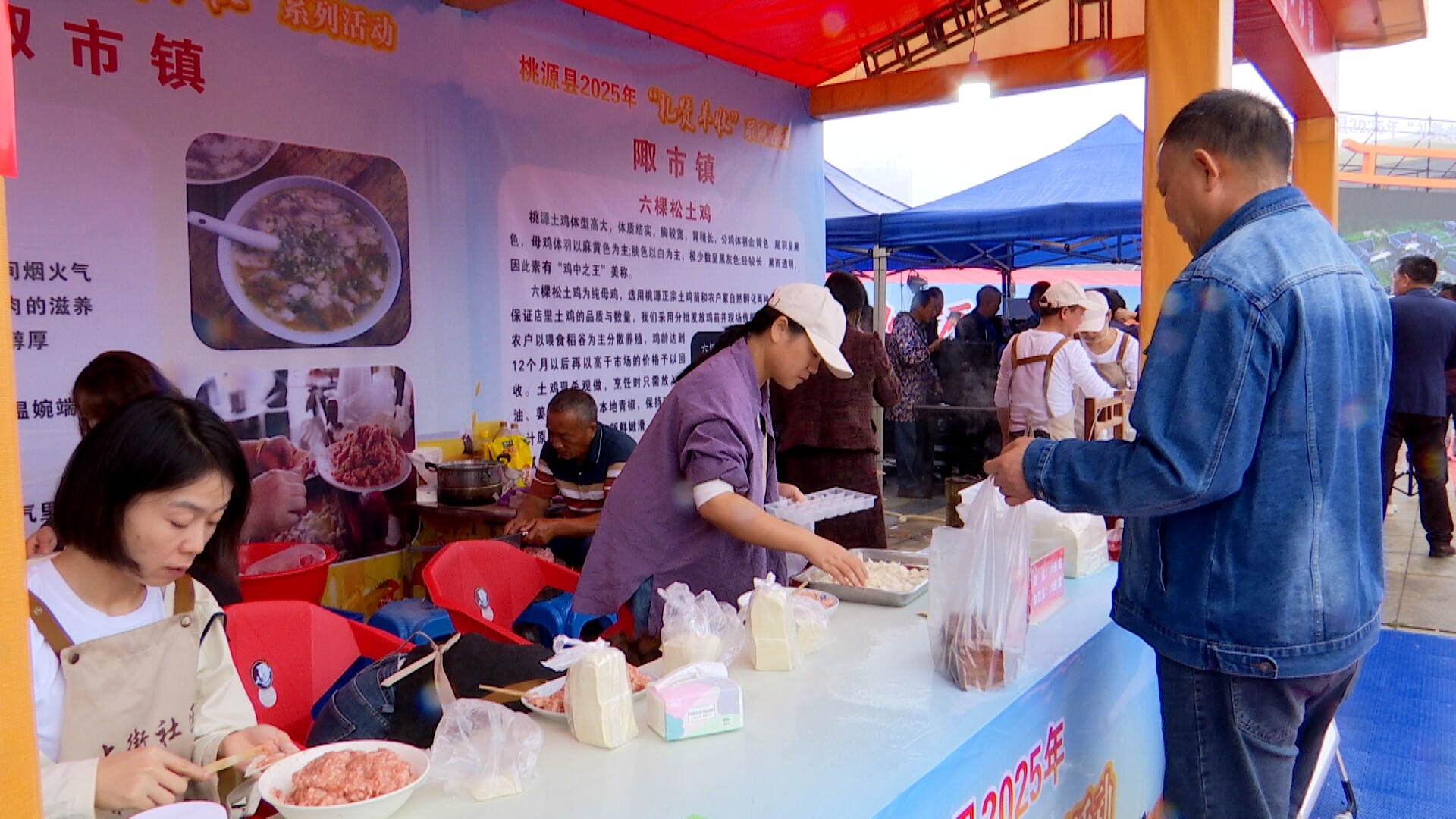 陬市担担饺儿负责人 吴维:卖得非常好,一拨接一拨的人,我们的饺儿已经销售了两三百碗,生的熟的加起来有三四百碗。现在人员非常忙碌,你看我们包饺子的都有三四个,剁肉的有一个在现场,感觉比去年生意还要好。