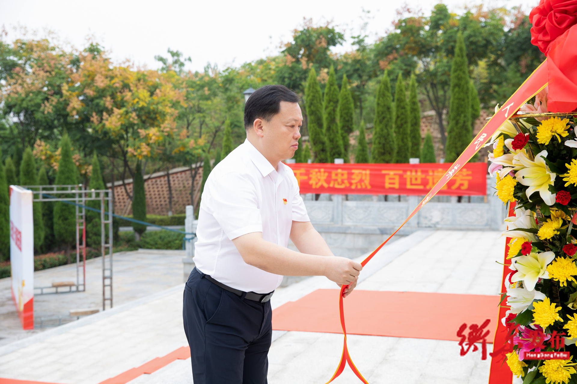 敬献花篮环节,在深情的《献花曲》中,礼兵们稳稳托起寄托着全县人民哀思的花篮,缓步走向革命烈士纪念碑,将花篮整齐摆放在碑前。谭建华缓步登上台阶,上前仔细整理花篮缎带。活动最后,全体人员瞻仰烈士纪念碑、敬献鲜花,绕纪念碑一周。