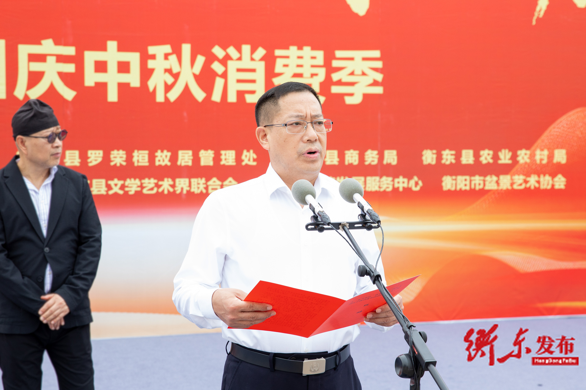 衡东融媒9月30日讯(融媒体记者 谭忠 谭碧婷 )9月30日上午,“双节放松·就来衡东”2025年国庆中秋消费季活动启动仪式在县城滨江广场举行。县委书记谭建华出席并宣布活动启动。县委副书记、县长蒋崇华致辞,特邀嘉宾中国盆景协会会长苏放出席。