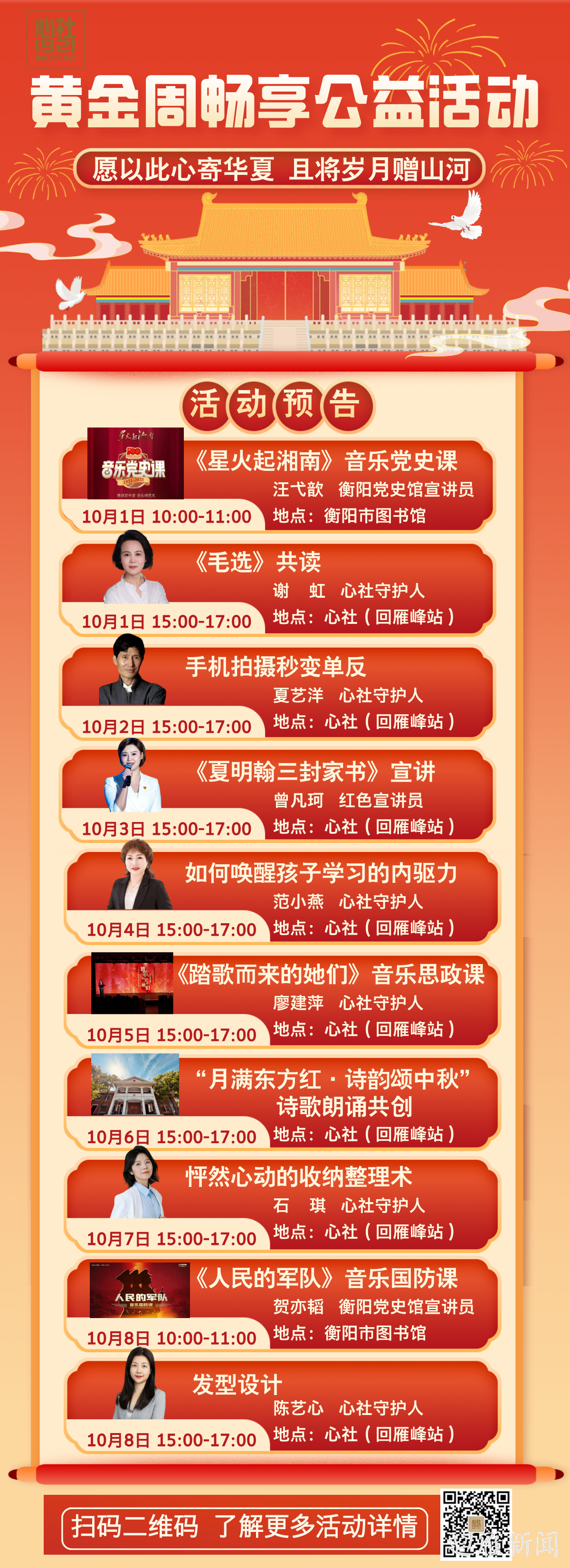 国庆假期衡阳【心社1921】精彩活动玩不停!诚邀您一起参加!