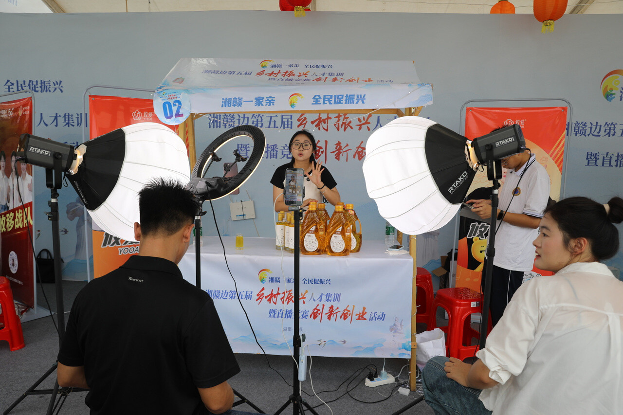 湘赣边第五届乡村振兴人才集训暨直播竞赛创新创业活动自8月启动以来,吸引了来自湘赣两省24个县市区的380名行业精英、电商达人相聚攸县,活动共集聚湘赣红产品320款,完成线上线下销售额2000万元。活动开展以来,累计发布湘赣边文旅、农特产品系列推文188条,话题浏览量突破5000万。