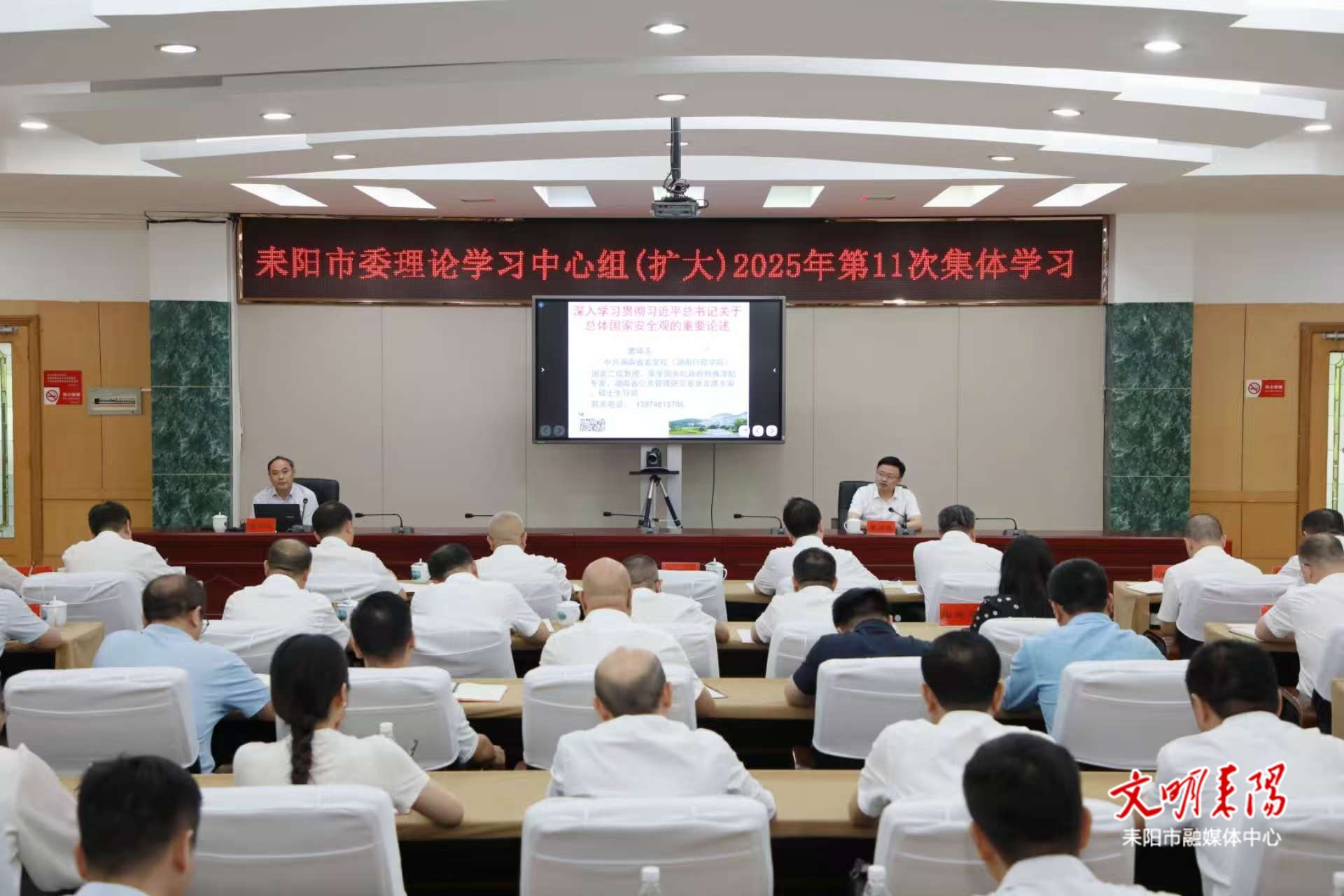 耒阳融媒9月30日讯(记者 袁成龙 曾志明)9月30日下午,市委书记张润槐主持市委理论学习中心组(扩大)2025年第十一次集体学习,深入学习习近平经济思想和习近平总书记关于总体国家安全观的重要论述精神。