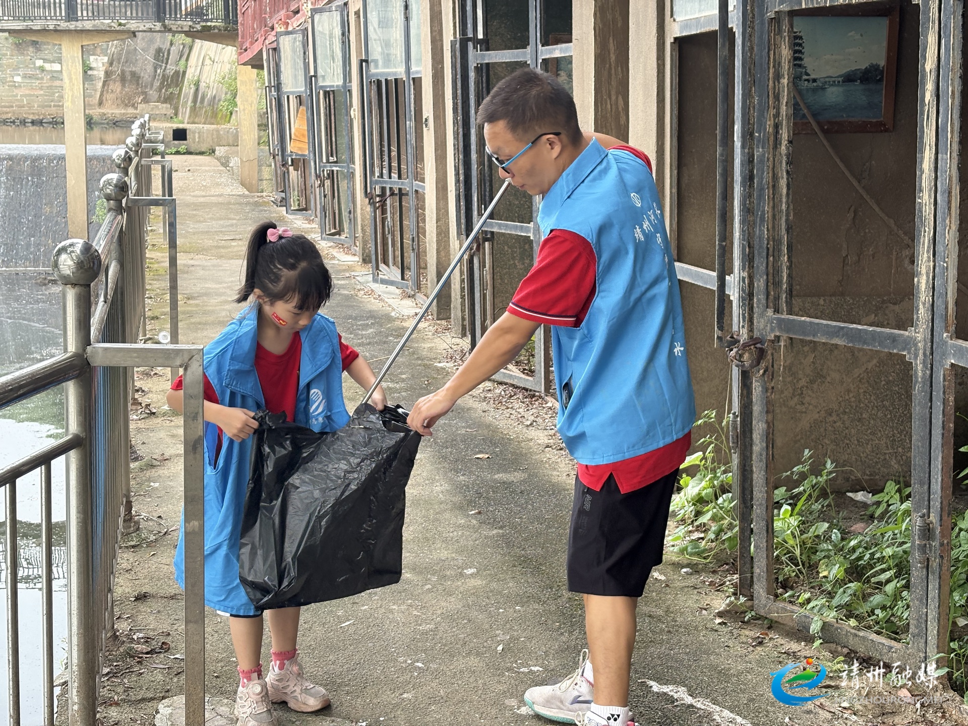 河岸上,志愿者带领小朋友沿河岸行动,大家手持垃圾袋弯腰捡拾塑料瓶、烟头等沿岸垃圾,同时向路过居民及沿岸住户普及护河知识。随后,志愿者还结合生动案例向小朋友讲解垃圾入河对水生生物的危害,让环保理念深植童心。
