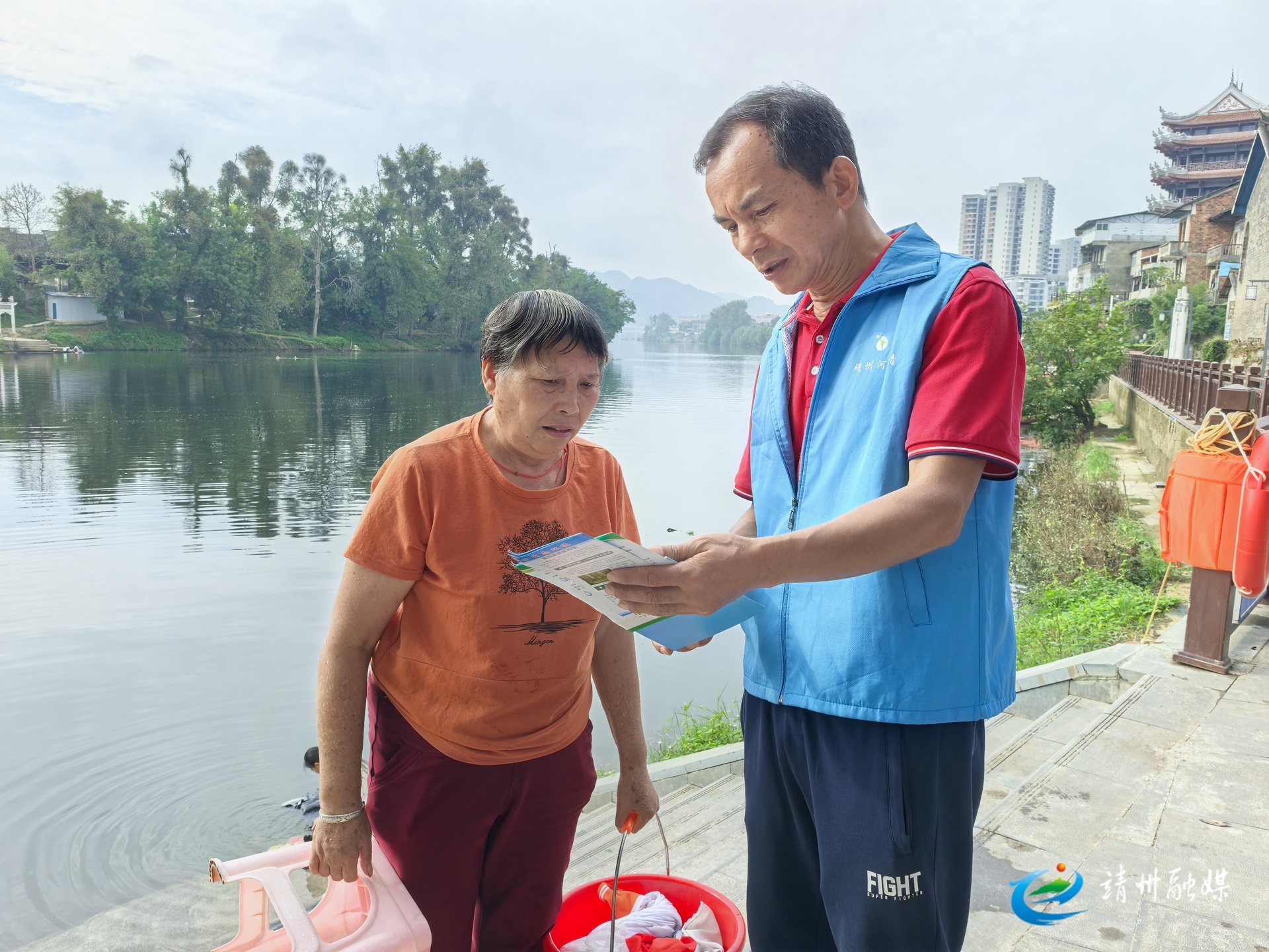 志愿者正在给河岸居民宣传环保理念(钦苏芬 摄)