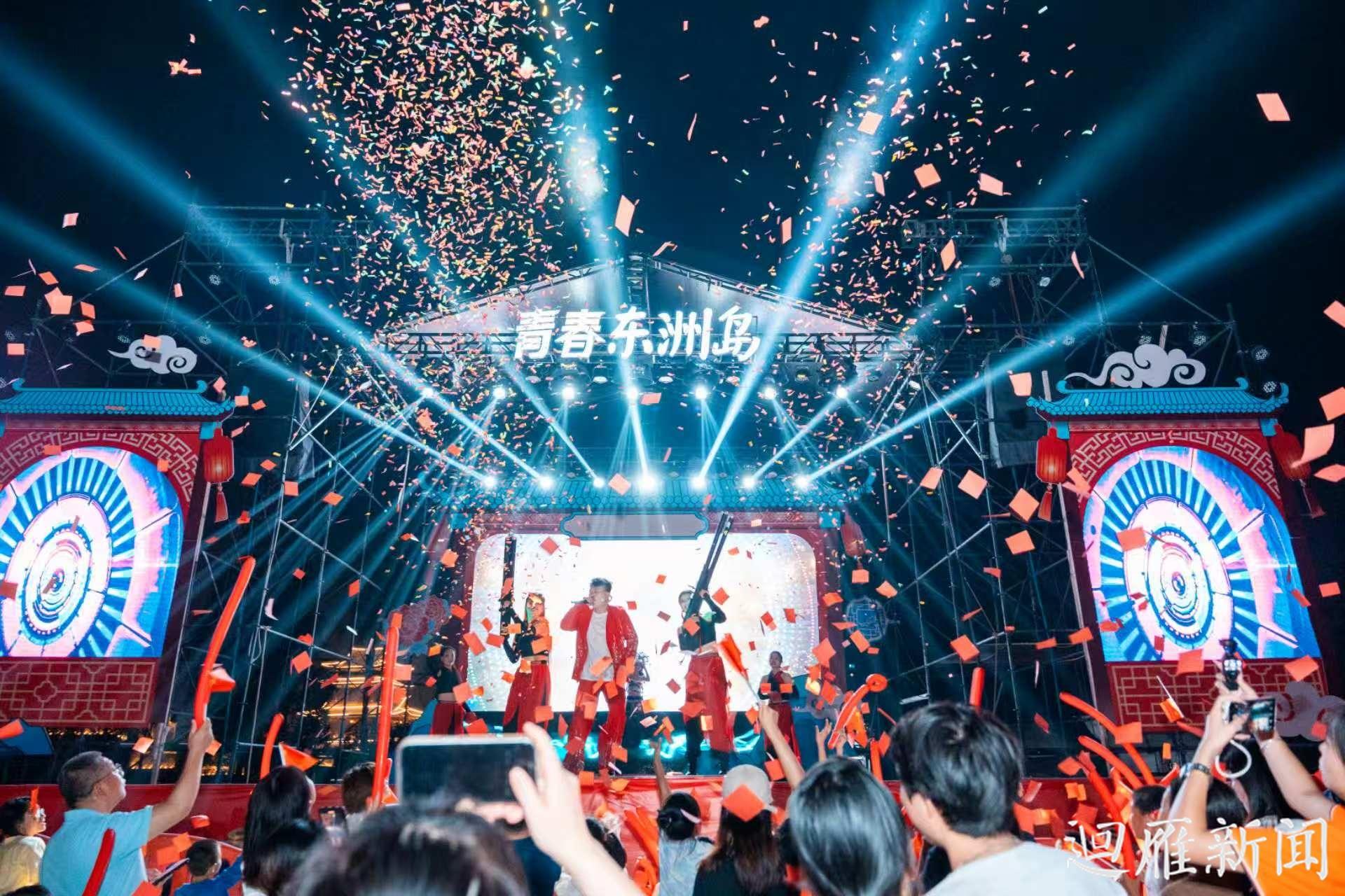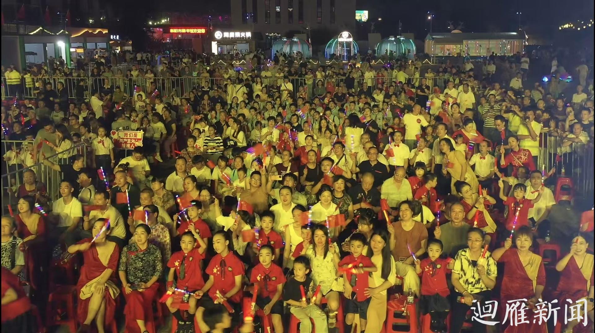 活动当晚,潇湘八景文化创意场现场群众手持国旗,在激昂旋律中共同庆祝新中国华诞,用嘹亮的歌声传递对祖国的深情祝福;市府路美食文化街区文艺展演人气爆棚,特色美食摊位前排起长队,游客如织;东洲岛震撼上演的“九天玄凤”飞行表演与“七彩祥云”烟花秀,以科技与艺术交融的方式向祖国献礼。