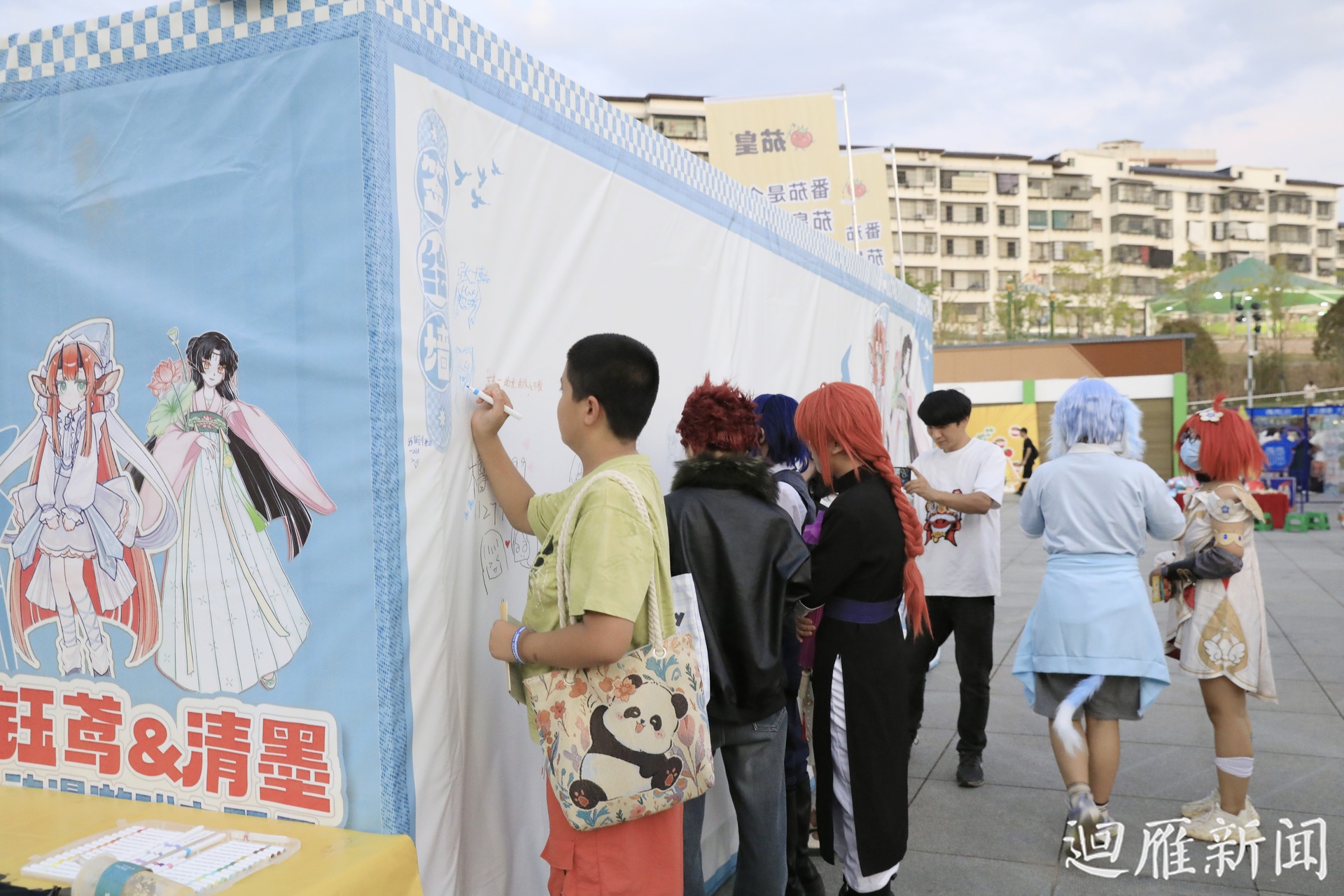 本次主题展精心设置了“动漫展示区”“游戏互动区”与“同人市集区”三大核心板块。展会现场,装扮精致的COSER们穿梭其间,成为流动的风景线,引得游客纷纷驻足合影。而“游戏红黑榜”“签名手绘墙”等互动装置前,也聚集了大量二次元爱好者分享观点、留下印记。