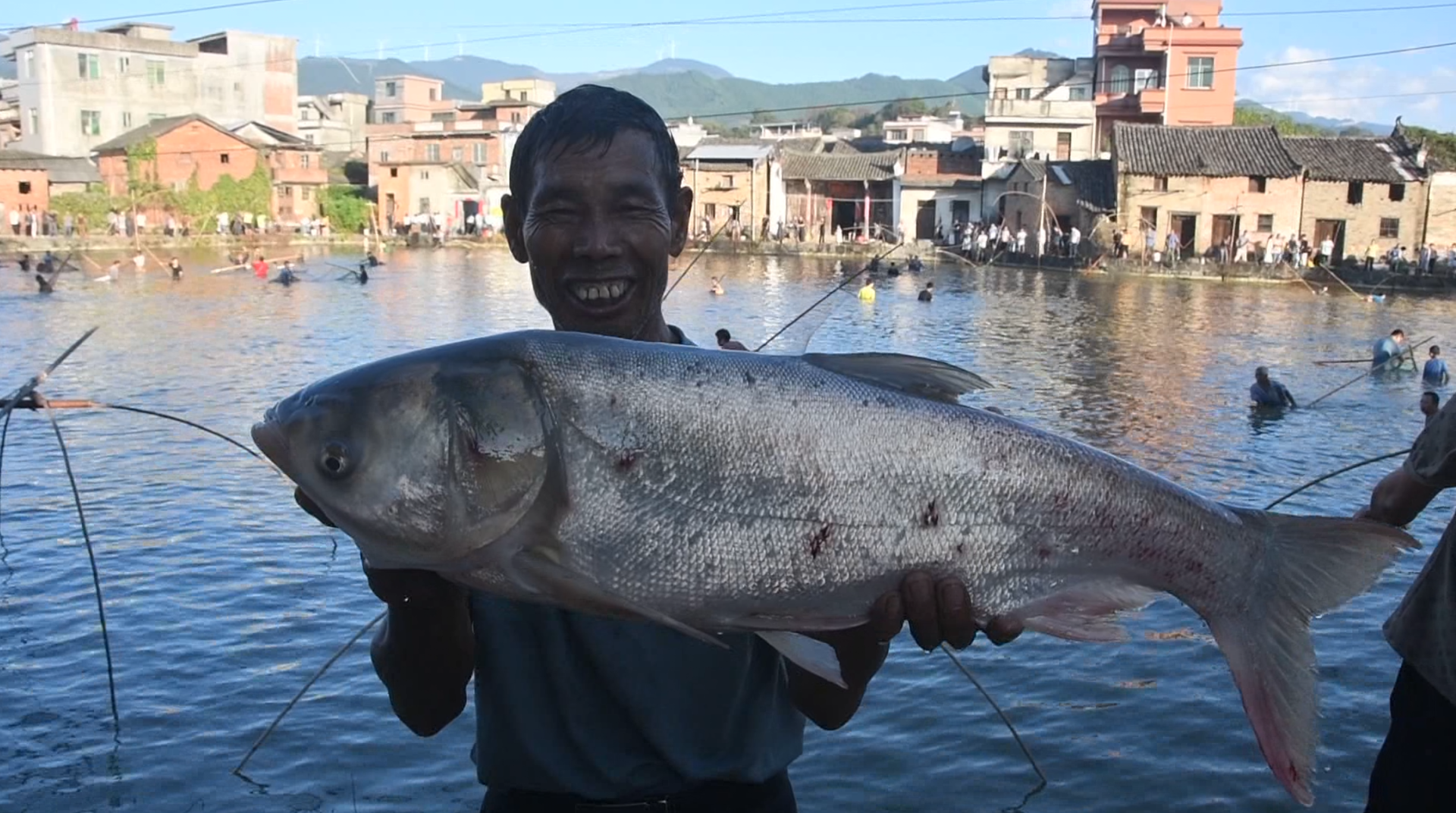 江永融媒10月9日讯(记者 廖光瑜 欧阳文 通讯员 田如瑞)10月5日,湖南省永州市江永县上江圩镇夏湾村,村民们欢聚一“塘”捕鱼,喜庆国庆中秋佳节。农历八月十四,是该村传承了500余年的传统习俗“捕鱼节”,每年到这一天全村男女老少都带着捕鱼工具跳入池塘捕鱼,把捕获的鱼平均发给每户村民,欢欢喜喜迎接中秋佳节的到来,预示年年有鱼,用这一独特的方式庆祝一年好收成。