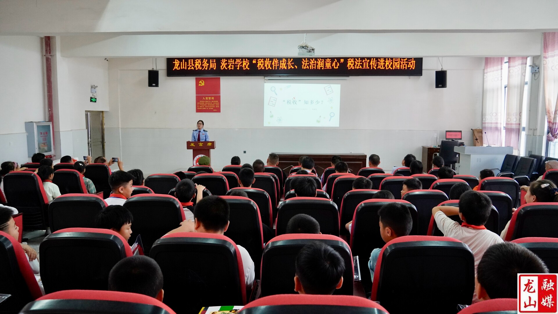 龙山县融媒体中心10月11日讯(记者 王秋月 通讯员 王艺文 姜长春)10月10日,县税务局走进茨岩塘镇九年制学校,开展“税收伴成长,法治润童心”活动,为同学们带来了一堂生动有趣的税收知识课,旨在让税收法治理念在孩子们心中萌芽生长。