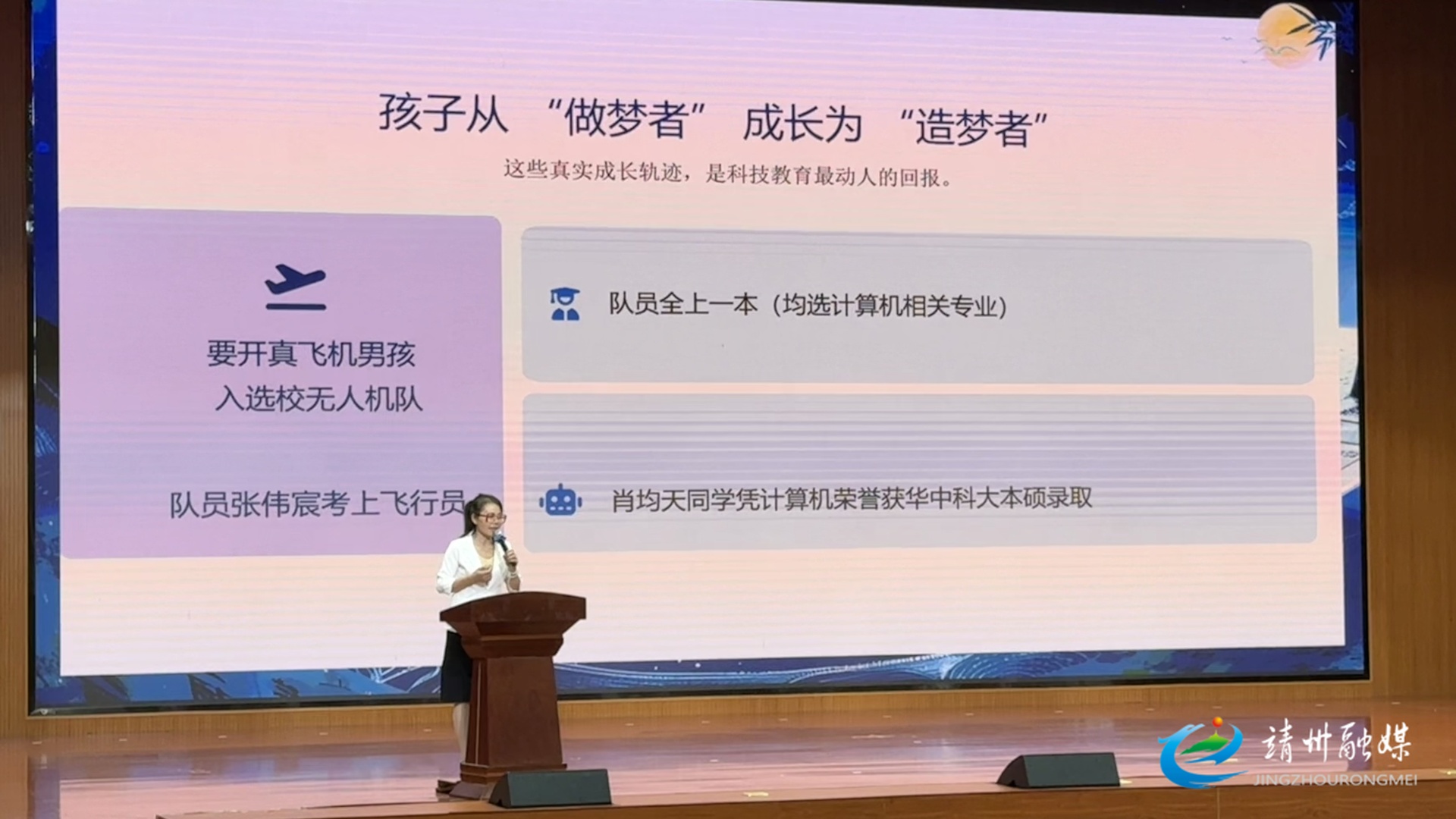 活动现场,五位怀化教育战线优秀代表依次登台,立足自身工作实际,用生动的语言和感人的事迹,讲述教师的育人故事,传递教育家精神的真谛,推动教育家精神扎根教育工作者心中。沅陵县太安幼儿园的党支部书记、园长张燕深耕幼教,以优秀教研成果践行 “大爱育人”,成为园长工作室标杆;溆浦县特岗教师黄鸿芳扎根乡村十二载,用 “以爱育爱” 的坚守温暖乡村学子的童年,成长为 “双科型” 教育骨干;怀化市红星路小学心理健康教师申邵梅秉持 “每颗星星都有属于自己的光芒” 信念,用专业与爱心点亮困境儿童心灵;芷江一中教师杨惠娟深耕科创教育,从纸飞机到无人机课程,助力乡村孩子的科技梦;正高级教师徐亚君用三十年光阴守护教育初心,深耕物理讲台,让农村学校教学质量超越城区学校。