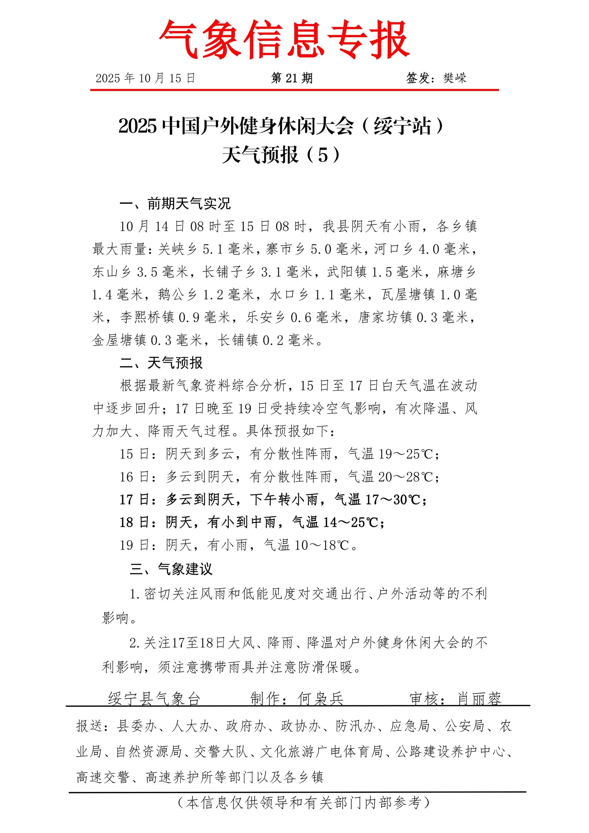 10月15日天气预报丨“中国体彩”2025中国户外健身休闲大会(绥宁站)