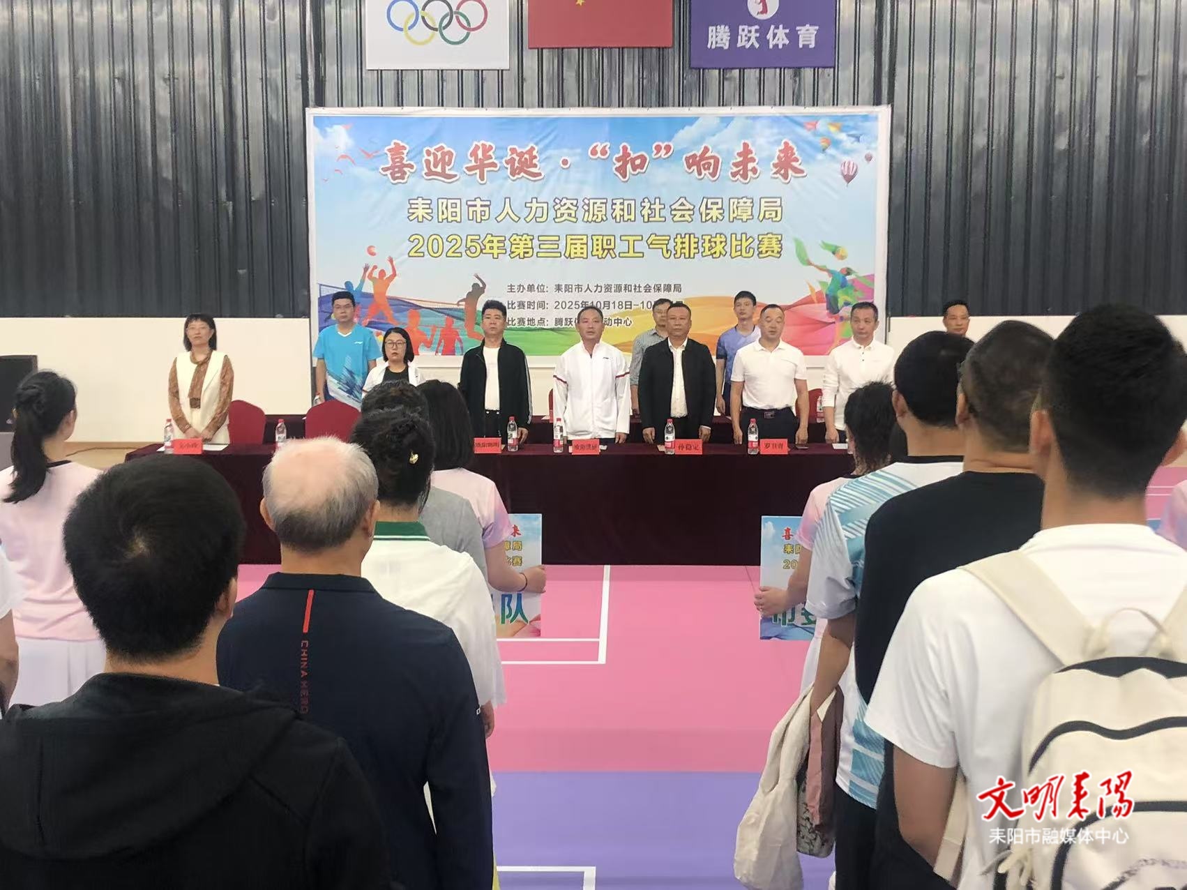 耒阳融媒10月19日讯(记者 贺智)10月18日上午,市人社局2025年第三届职工气排球赛正式拉开帷幕。
