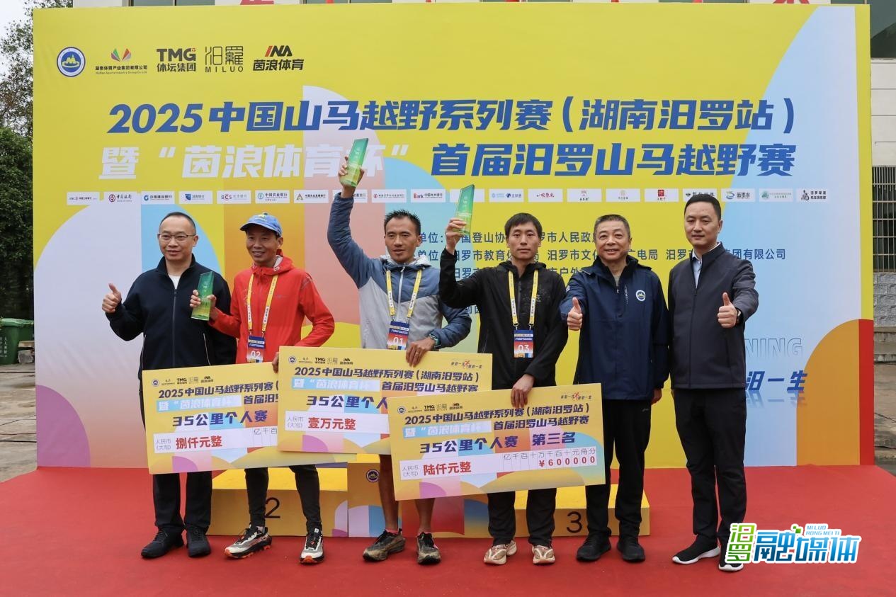 汨罗市委书记朱平波,副书记、统战部部长叶罡,湖南茵浪体育股份有限公司董事长李海波分别为35公里个人赛男子冠、亚、季军颁奖。