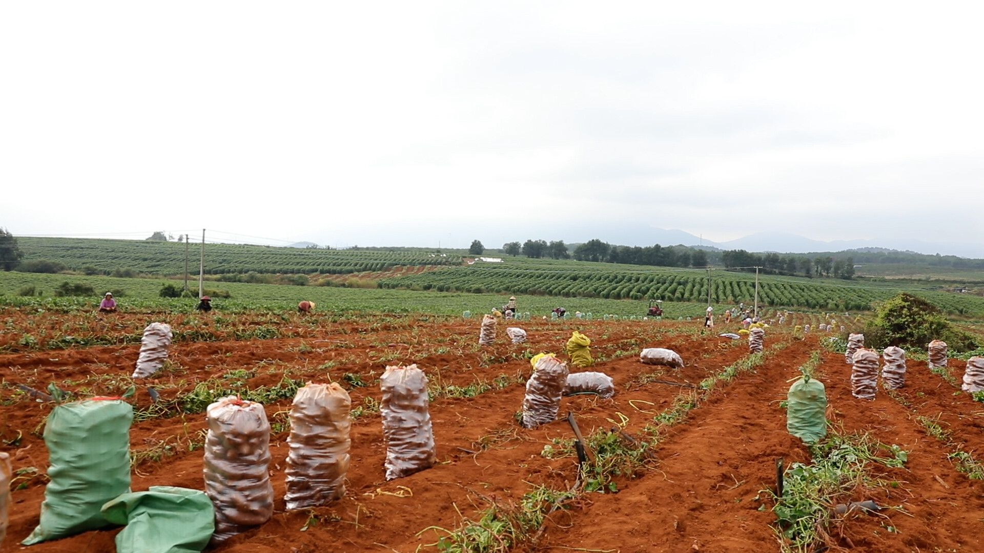 在红薯种植基地,种植户欧阳江春与省农科院及市、县老专家一起忙于查看收获情况的同时,工人们忙着采挖饱满鲜亮的红薯。今年,他在老专家全程指导下规模化种植110亩新品种紫薯。通过精准用药和科学管理,不仅有效防治了病虫害,还节省了20%的农药成本,亩产高达5000斤,预计总产值超85万元。