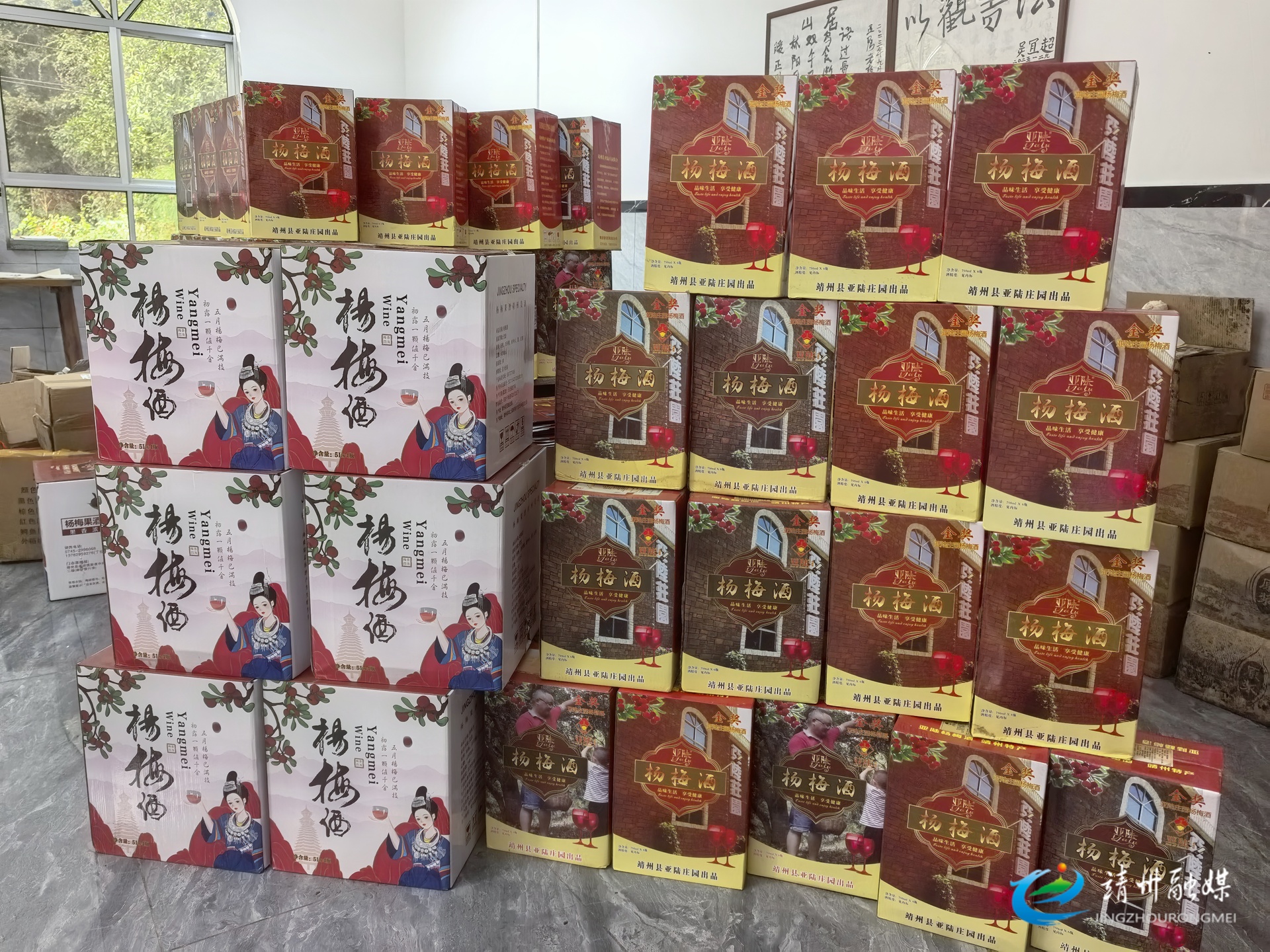 靖州作为“中国杨梅之乡”,杨梅种植面积超10万亩,投产标准园6.8万亩,年产鲜果4万吨以上,为杨梅酒酿造提供了稳定优质的原料基础。目前,吴亚陆的古法杨梅酒通过“线上 + 线下”销往全国,还走出国门,作为特色礼品走进俄罗斯大使馆,并远销南非“一带一路”合作企业。