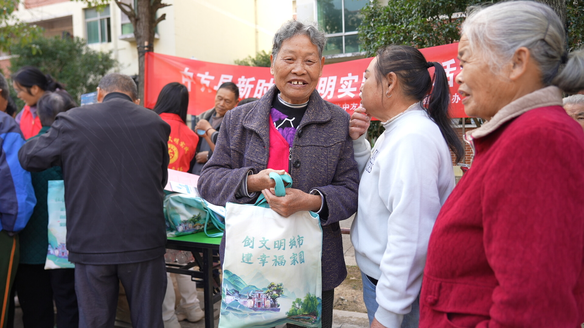 除了精彩的互动问答,志愿者们还通过发放宣传礼品和手册的方式,将文明理念传递给更多居民。此次发放的宣传礼品颇具巧思,围裙、环保袋等日常用品上均印有文明创建相关宣传内容,让居民在使用过程中能随时接触到文明知识,实现 “日用而不觉” 的宣传效果。同时,志愿者们还向居民发放了详细的宣传折页和手册,折页和手册中系统梳理了文明创建的各项知识,包括文明出行、文明交往、垃圾分类的具体方法等,方便居民带回家后仔细阅读、深入学习。
