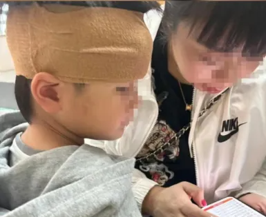 一名小学生玩耍时,另一位小朋友拿着萝卜刀直戳进了他的眉头,伤势严重到需要前往医院接受四针缝合治疗。