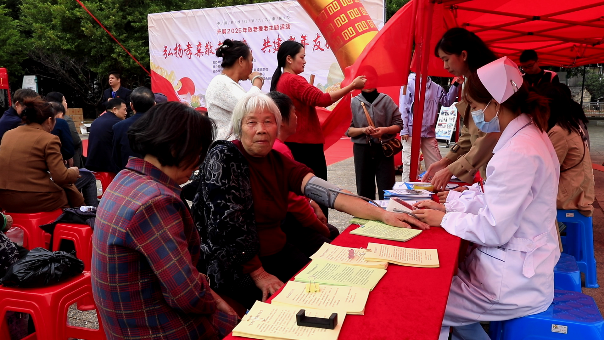 活动现场暖意融融,文艺演出率先拉开帷幕。来自文艺爱好者与社区老年文艺队联袂登台,欢快的民族舞蹈活力十足,深情的诗歌朗诵饱含敬意,一个个接地气的节目赢得台下老人们阵阵掌声。现场还设置了孝亲环节,工作人员现场邀请高龄老人体验瑶药泡脚,特意准备了瑶药熬煮成的温热药汤。让小朋友们为老人们洗脚捶背。公益服务区,爱心义剪和健康义诊摊位前人头攒动。发型师志愿者手法娴熟,为老人们剪出清爽利落的新发型;医务志愿者们耐心地为老人们测量血压、检查身体,并提供专业的健康咨询。同时,消防和民政部门工作人员穿梭在人群中,耐心的给老人们讲解养老政策和相关安全知识等。