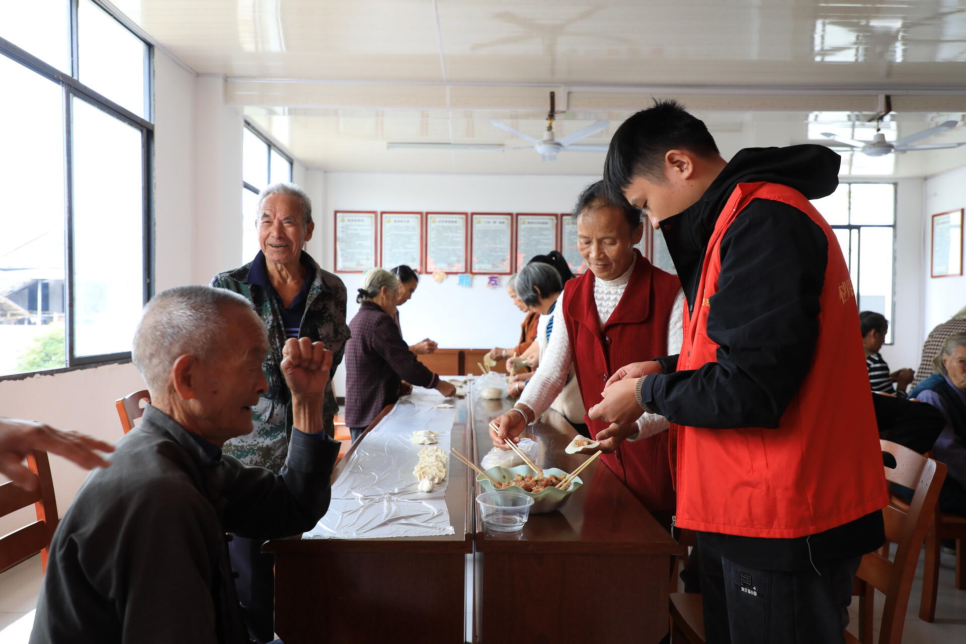 江永融媒10月30日讯(记者 周佳琳)岁岁重阳,今又重阳。10月29日,江永县民政局、县慈善总会、县永惠社会工作服务中心驻邑口社工室联合桃川镇人民政府,在桃川镇邑口村共同开展“九九重阳情 饺香暖人心”主题活动,用热气腾腾的饺子和贴心陪伴,为老人们送上了一份别样的节日温暖。