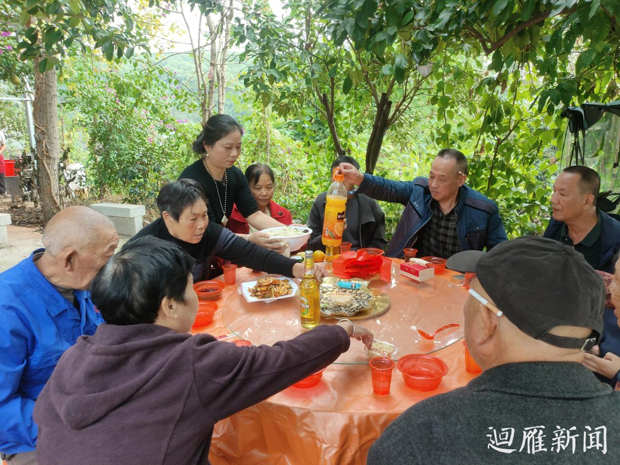 红歌联唱环节结束后,农家宴席正式开启。桌上摆满了水果、点心和富有地方特色的农家菜肴,老人们围坐一堂,品美食、话家常,畅谈如今的幸福生活。96岁的周奶奶动情地说:“邻里聚在一起,热热闹闹、团团圆圆,心里就是暖和!”朴素的话语道出了在场所有老人的共同心声。