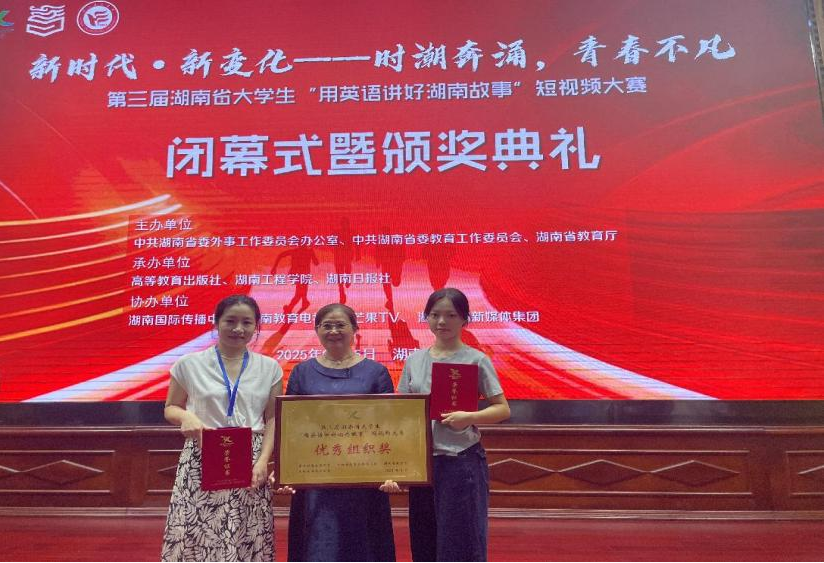 她积极投身教学竞赛,以赛促教、以赛促学,多次带领学生参加“楚怡杯”湖南省职业院校技能竞赛并获奖。2025年,她指导学生参加大学生“用外语讲好中国故事”优秀短视频比赛,斩获全国特等奖和湖南省特等奖。备赛期间,她带领学生争分夺秒,长时间工作到深夜。“看到学生一点点进步,拿到奖项,哪怕只是简单一句‘老师我懂了’,一切都值得。”在她眼中,比奖项更珍贵的,是学生逐渐建立的学习自信与对知识的渴求。