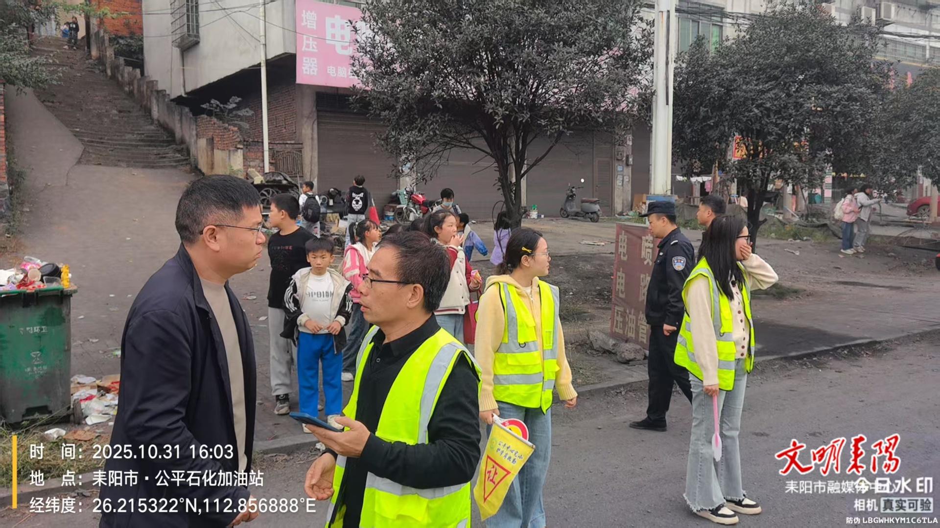 耒阳融媒 11 月1日讯(记者 江维东)10月 31日, 公平圩镇组织“两站两员”工作人员,在公平完小旁及周边重点路口开展交通安全劝导专项行动。