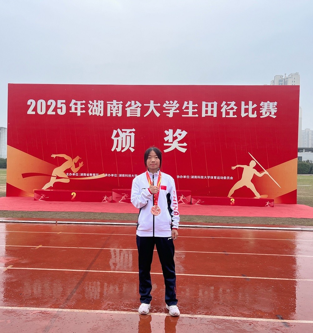 一、荣耀时刻,见证拼搏力量 赛场上,湘南幼专运动健儿们英姿勃发,全力以赴。在高职高专组比赛中:陈国安在标枪项目中以精准的投掷与强大的爆发力勇夺亚军;蒋思宇在耐力与意志的双重考验中展现非凡毅力,分别获得10000米季军、5000米第四名;周正豪在跳高中以出色表现摘得第六名;陈欣在400米跨栏获得第八名;李超乐获标枪第八名。在女子阳光组比赛中:吴俊宁、黄思汝、段轻盈、邹方方组成的接力队默契配合,夺得4×100米接力赛第四名;邹方方在400米单项中斩获第五名;黄思汝在跳远项目中获第八名。每一枚奖牌、每一个名次,都是对运动员日复一日刻苦训练的最好回报。
