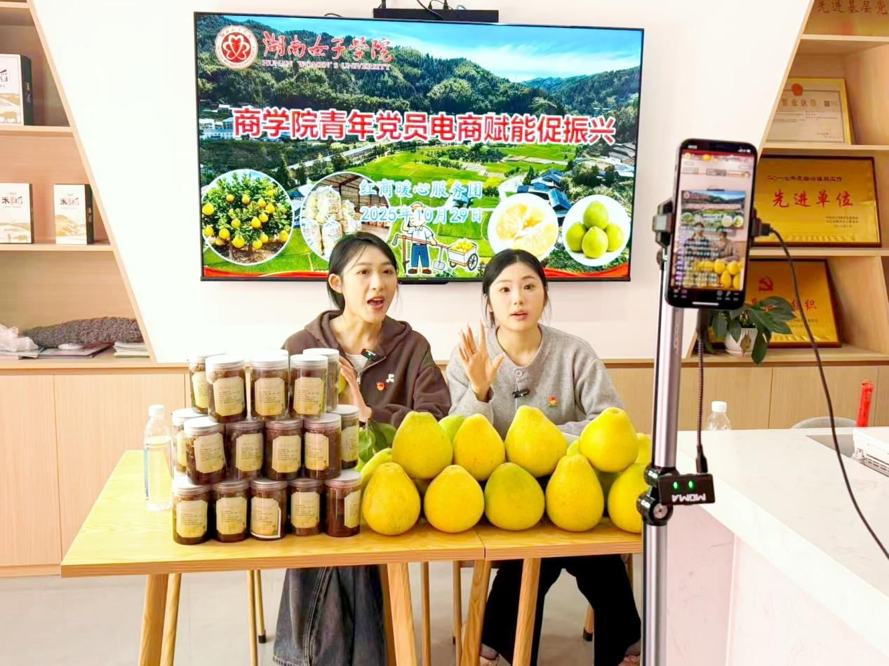 “感谢湖南女子学院商学院‘红商暖心服务团’的两位青年党员主播,不仅宣传了熟坪社区,也让更多人喜欢上我们的冰糖柚。”社区居民段维华欣喜地说道。活动中,党员主播走进田间地头,通过线上直播生动推介熟坪冰糖柚,同步展示当地文旅资源,有效提升产品与地域知名度。湖南女子学院驻熟坪社区工作队队长、第一书记李飞表示:“这次活动是线上推广冰糖柚的一次全新尝试,为驻村工作提供了有力支撑。”