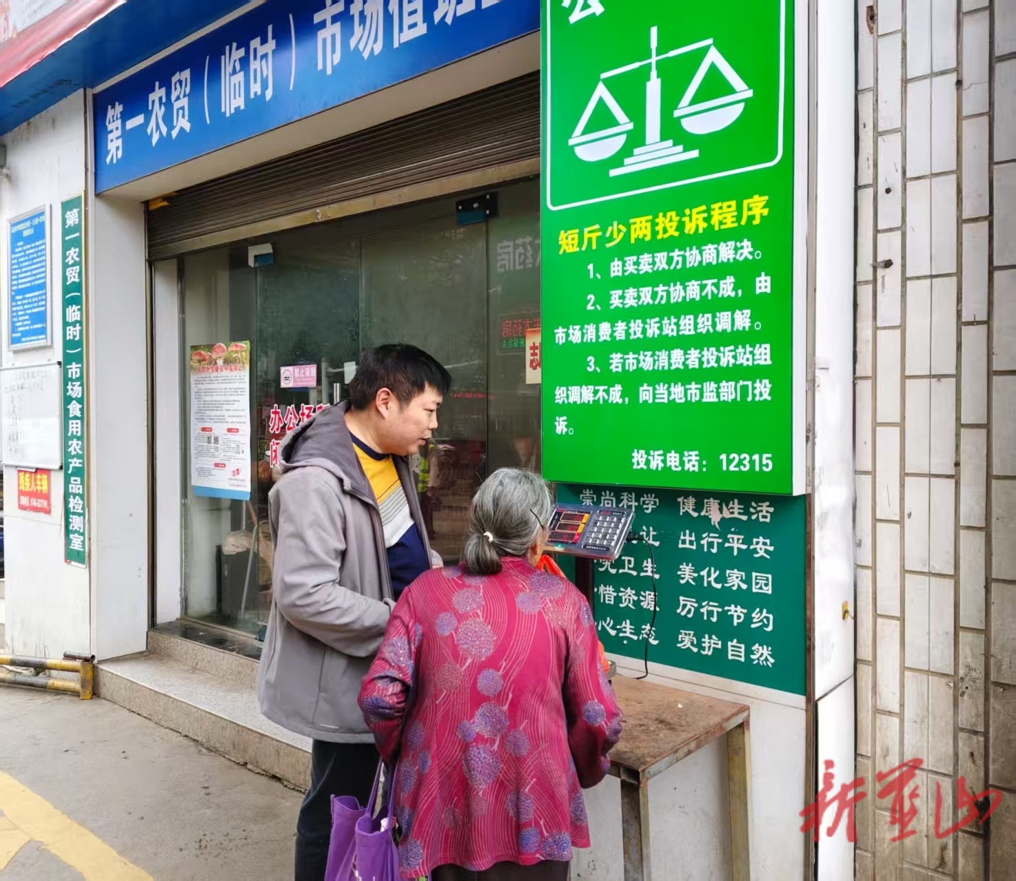 新蓝山客户端11月7日讯(通讯员 刘文斌)11月7日,在蓝山县第一农贸(临时)市场,市民正在“公平秤”服务点复秤。为维护市场公平交易和广大消费者合法权益,该县在各农贸市场均设置了“复秤台”,市民在市场购买商品时如果担心秤不准,可以进行复秤。