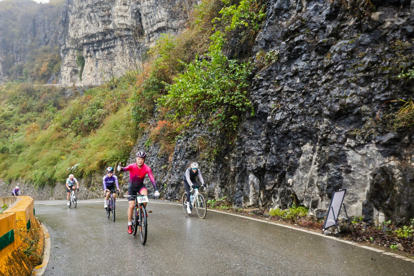 上午8时30分,发令枪响,彩烟腾空,公路组、山地组选手冲出起点,彩色骑行服在八面山的山水间形成流动风景线,引得群众驻足喝彩。从里耶古城(秦简)博物馆出发,沿着盘山赛道一路驭风而上,在素有“南方空中草原”之称的八面山,完成了一场对体力与意志的双重极限挑战,用车轮书写了体育竞技与历史文化、生态美景深度交融的动人篇章。