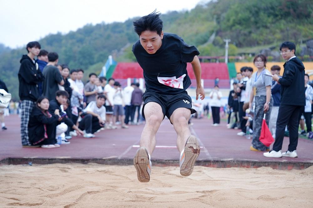 跳远沙坑旁,选手们助跑、踏跳、腾空、落地,一系列动作行云流水,金色沙粒随落地瞬间扬起,成为赛场上的亮眼风景。