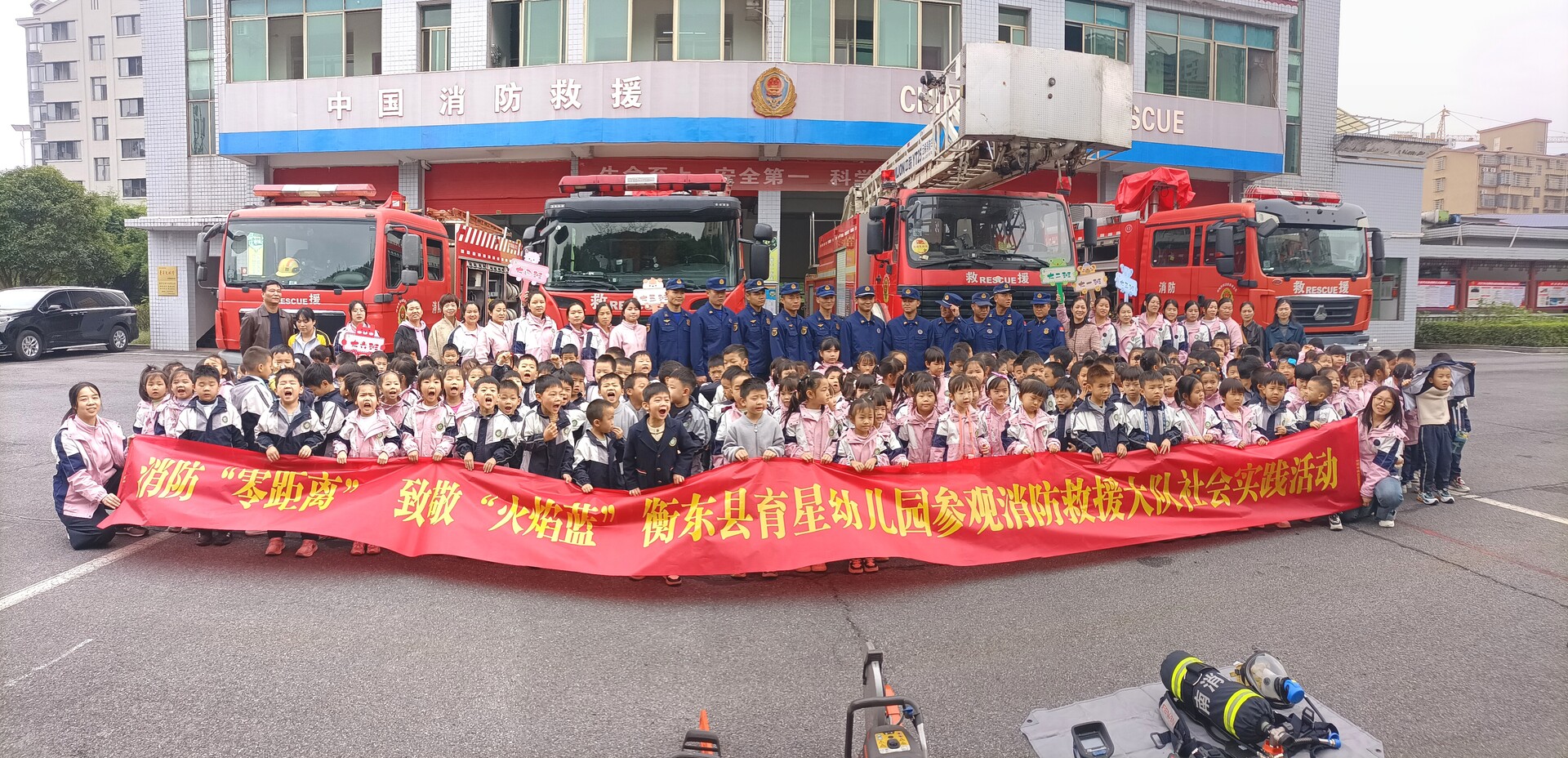衡东融媒11月13日讯(融媒体记者 胡雨希 通讯员 康伟清)11月13日上午,衡东县育星幼儿园大班组全体师幼排着整齐队伍,走进县消防救援大队,开展“消防零距离 致敬‘火焰蓝’”主题实践活动。孩子们带着对“逆行英雄”的崇敬,开启了沉浸式消防知识学习之旅。