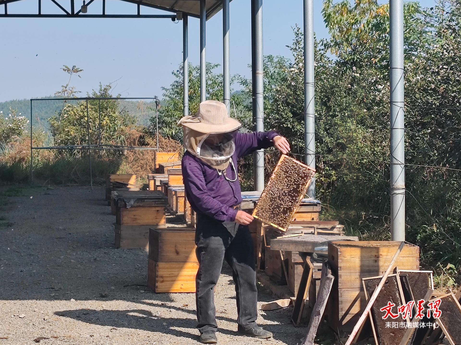 山间的蜜蜂养殖基地内,200余个蜂箱整齐排开,无数只小蜜蜂围着蜂箱嗡嗡鸣唱,养蜂人王仁字头戴防护帽,轻柔地逐个检查蜂箱,了解蜜蜂繁殖及储蜜情况,他说:“养蜂是个精细活儿,蜂群安置、蜂箱检查、育王、分蜂……每个环节都不容马虎。”