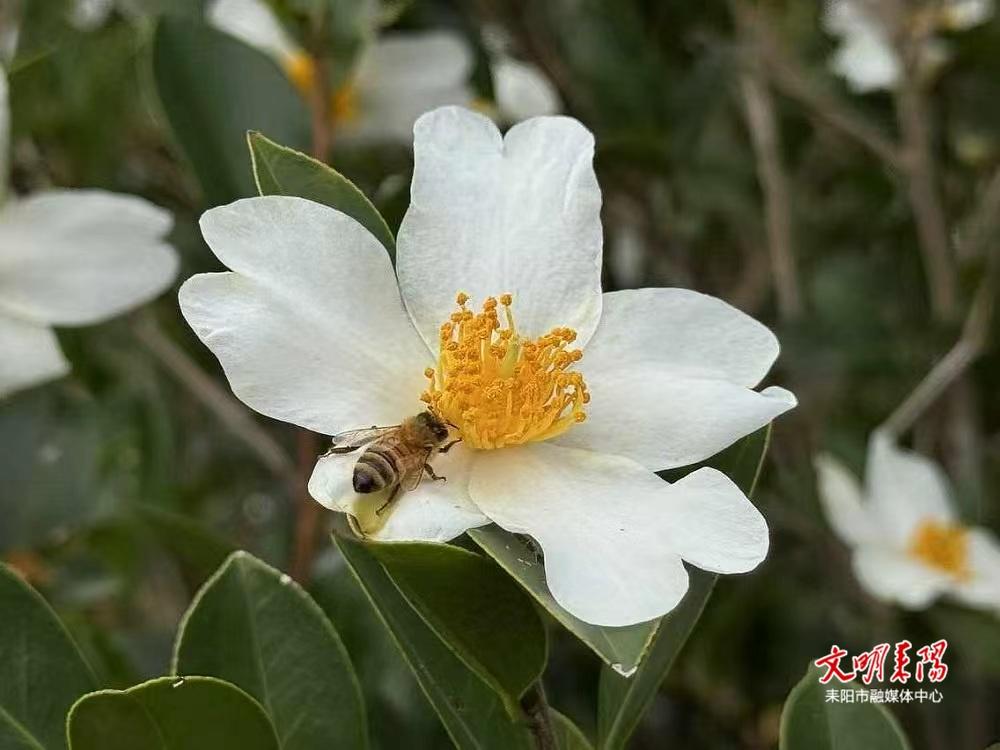 耒阳融媒11月17日讯(记者 钟杰 杨明涛 蒋境 雷坤 钟菲)眼下,正值油茶花盛开的季节,在长坪乡潭湖村,漫山遍野的油茶花迎风绽放,香飘四溢,如银雪飘飞,林间不时有蜜蜂飞舞,忙着采花酿蜜。
