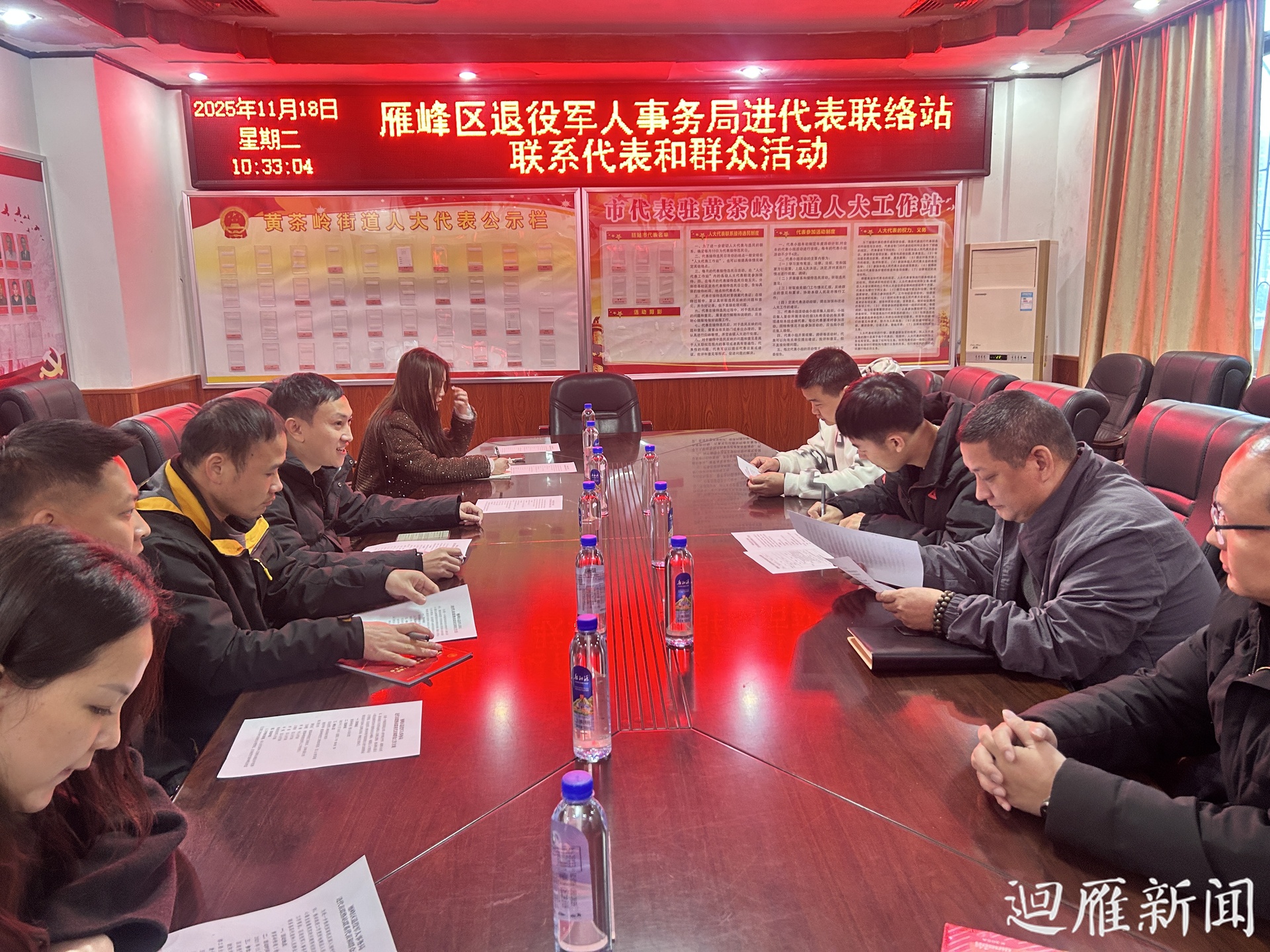 在上午的活动中,雁峰区退役军人事务局相关负责人一行来到黄茶岭街道代表联络站,向与会人大代表和部分退役军人代表通报了2025年度重点工作进展及建议议案办理情况,并就退役军人普遍关心的优待抚恤、权益维护、困难帮扶等政策法规进行了细致宣讲。在交流环节,与会代表针对退役军人特殊困难援助、优待证使用等问题进行了询问和建议,雁峰区退役军人事务局负责人和工作人员现场进行了详细回应与解答。