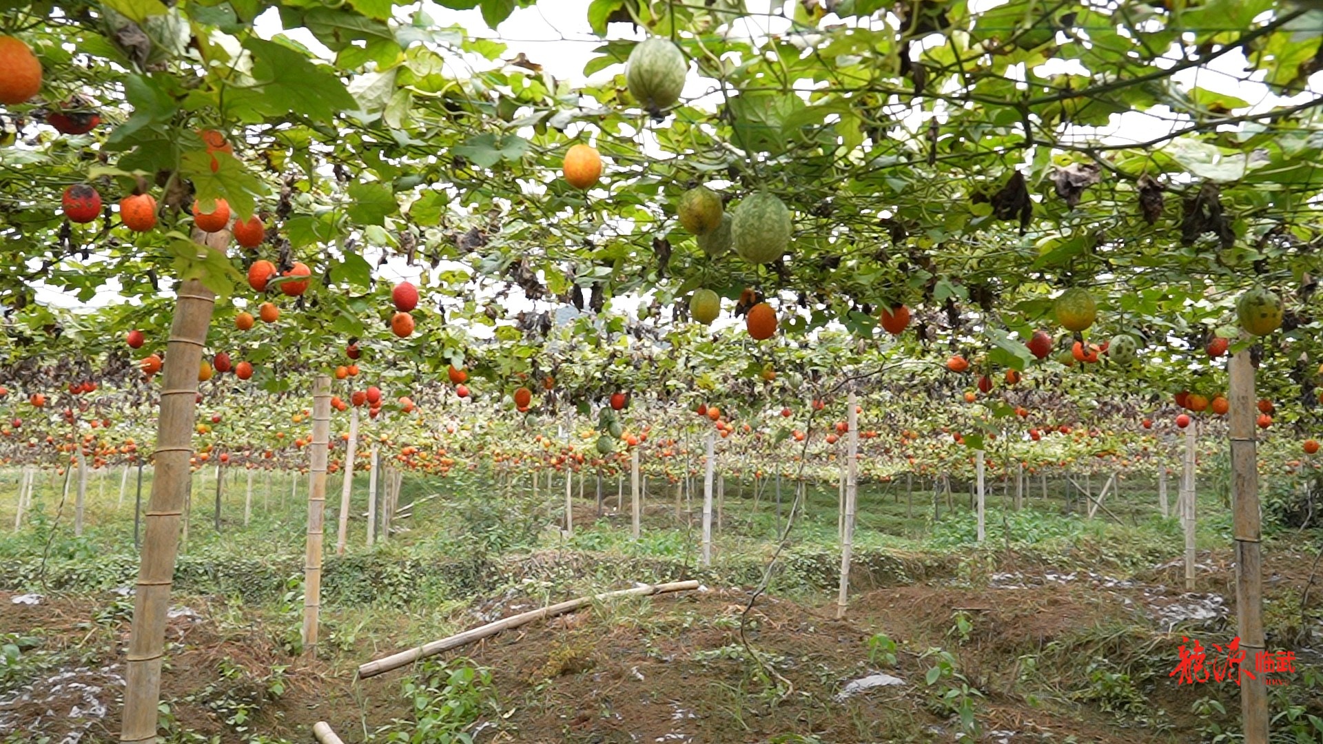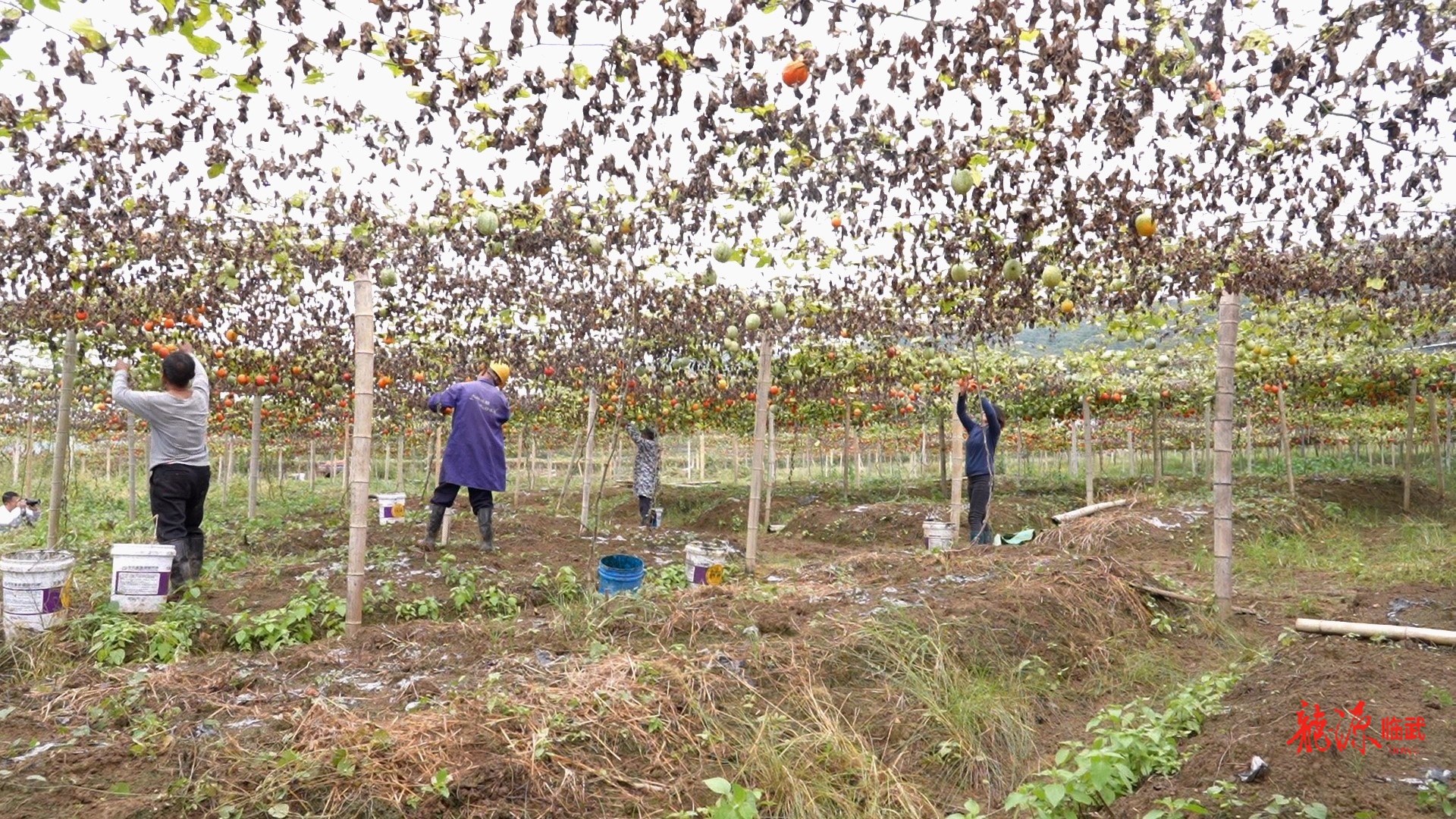 走进汾市镇山塘村的吊瓜子种植基地,青黄相间的吊瓜簇拥垂挂,密密匝匝地挂满藤架。村民们穿行其间,熟练地采摘着成熟的果实。