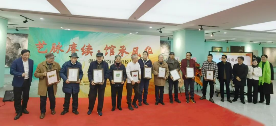 现场还集中举行了为捐赠者们颁发证书的仪式。杰出校友翟翊、魏猛克、陈国钊、刘迪耕、常惠君、王憨山、李立、易图境、欧阳笃材、陈白一、谢凯等人的家属,杰出校友黄铁山、杨艾湘、谢惠钧、李朋林、萧有恺、毛国保、戴树铮、陆荣斌、杨新明、曹劲风、杨顺年等,以及旷小津、瞿孜文等向湖艺美术馆捐赠了作品或史料的艺术家们,获颁捐赠证书。现场掌声经久不息,向所有“时光的邮差”致以崇高的敬意。