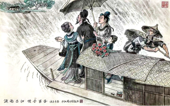 周令钊先生纸本彩墨作品《泪雨昌江 愤世留芳》