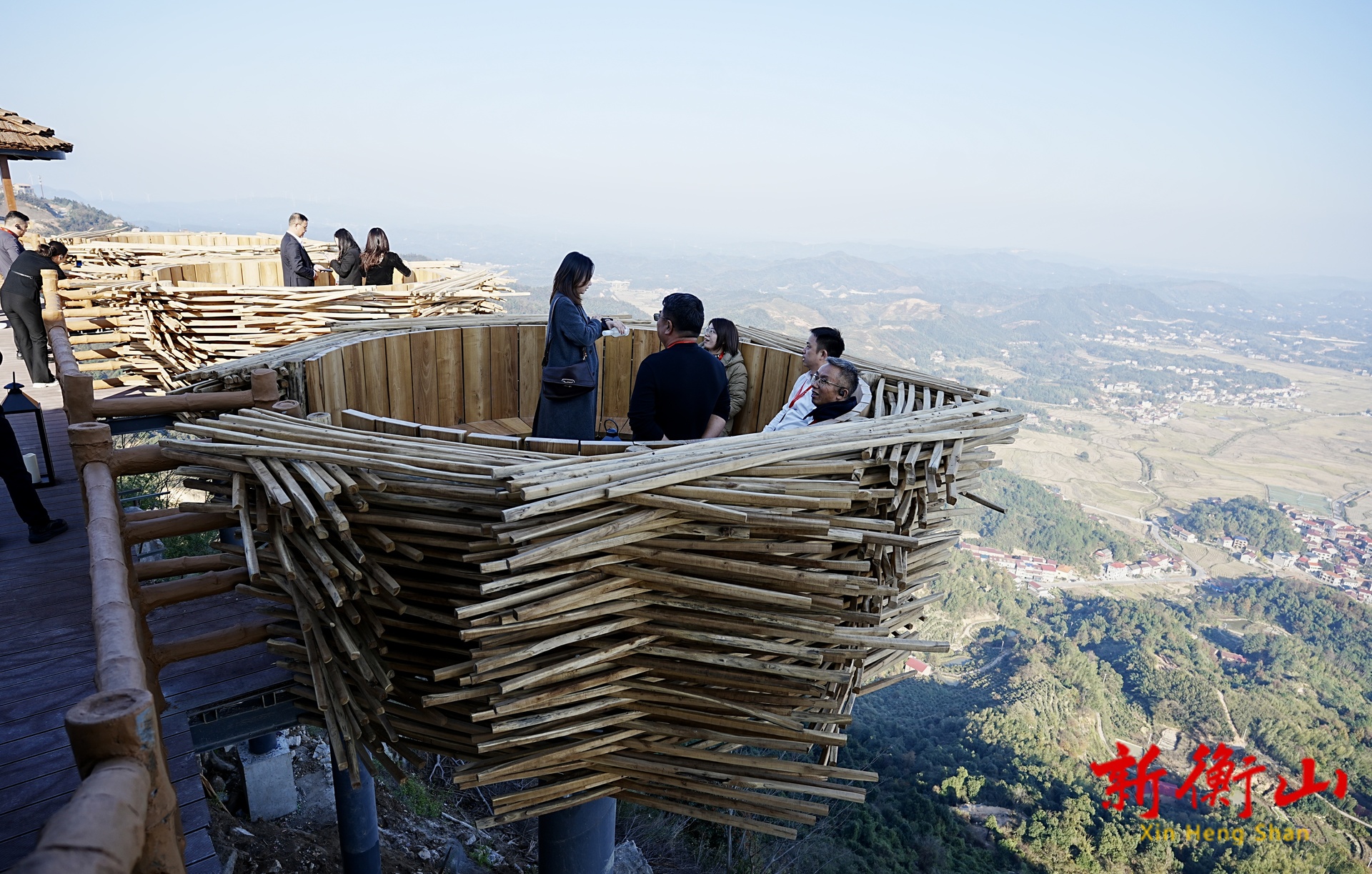 告别紫金山,观摩团来到雄奇险峻的紫盖峰,这里的多元文旅业态令人瞩目。海拔520米的狮子岩,以“崖顶咖啡、浪漫有约”为主题,依托爱情地理高点,打造休闲度假目的地。“湘商回归”标杆项目大乐之野(衡山紫盖峰店),以日式简约风格呈现乡村风貌,建筑风格独特,目前正加紧建设。