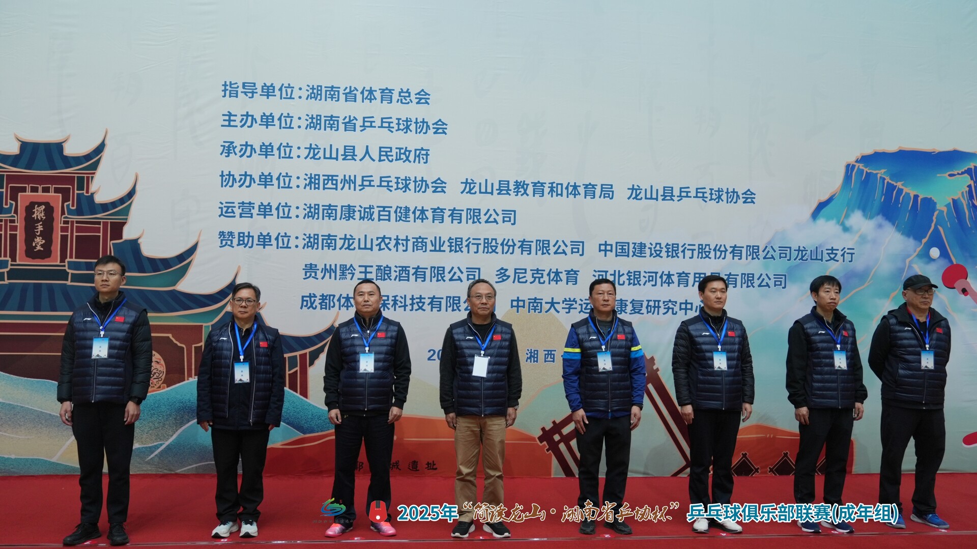 湖南省体育局原二级巡视员、湖南省体育总会专职副主席王晃,湖南省羽毛球乒乓球运动管理中心副主任、湖南省乒乓球协会常务副主席兼秘书长肖向阳,龙山县委副书记、县长周胜益,龙山县委副书记彭礼,来凤县人大常委会党组书记、主任候选人赵昌青,湘西州教育和体育局党组成员、副局长张国礼,龙山县人民政府副县长刘引,原中国乒球队队员、全运会双打冠军廖福民等领导嘉宾出席开幕式。刘引代表承办方致欢迎辞,王晃宣布比赛开幕。