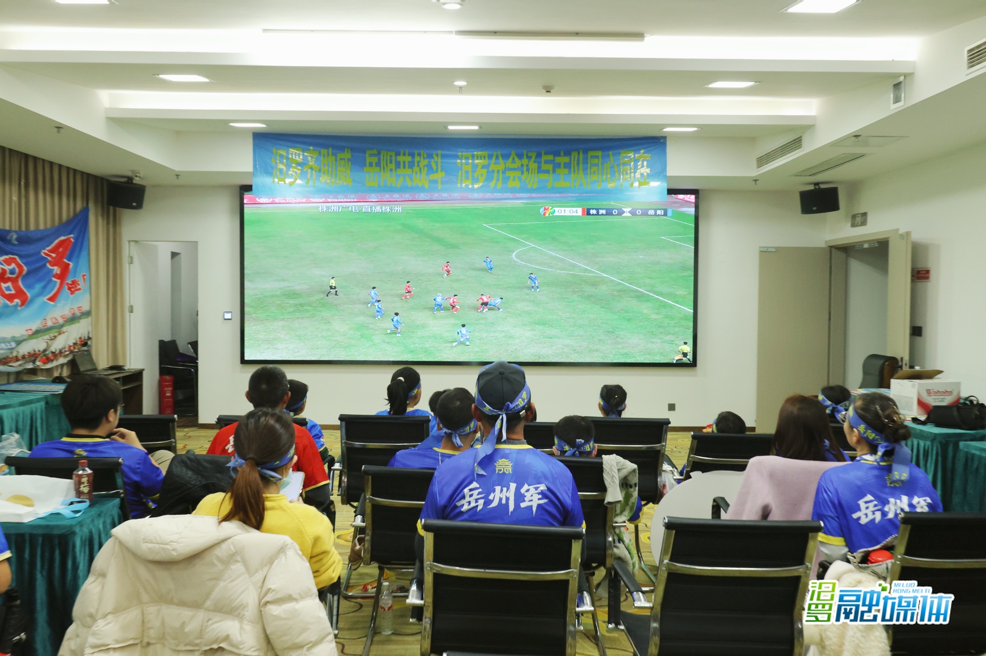 “很遗憾,之前岳阳队的6个主场、4个客场比赛,我们都曾到场助威,这次却一票难求。”尽管无法亲临株洲赛场,球迷们的热情却未减分毫。现场无论老少,皆身着象征岳阳队的蓝、红色球衣,齐声高唱《洞庭战歌》《荣光》等助威歌曲。所有人的目光都聚焦于大屏幕,为岳阳队的每一次进攻喝彩。下半场,当3号队员袁逸卿不慎打入乌龙球、球队错失扳平良机时,现场虽有片刻叹息,但随之响起的,是更加坚定、持久的加油声。