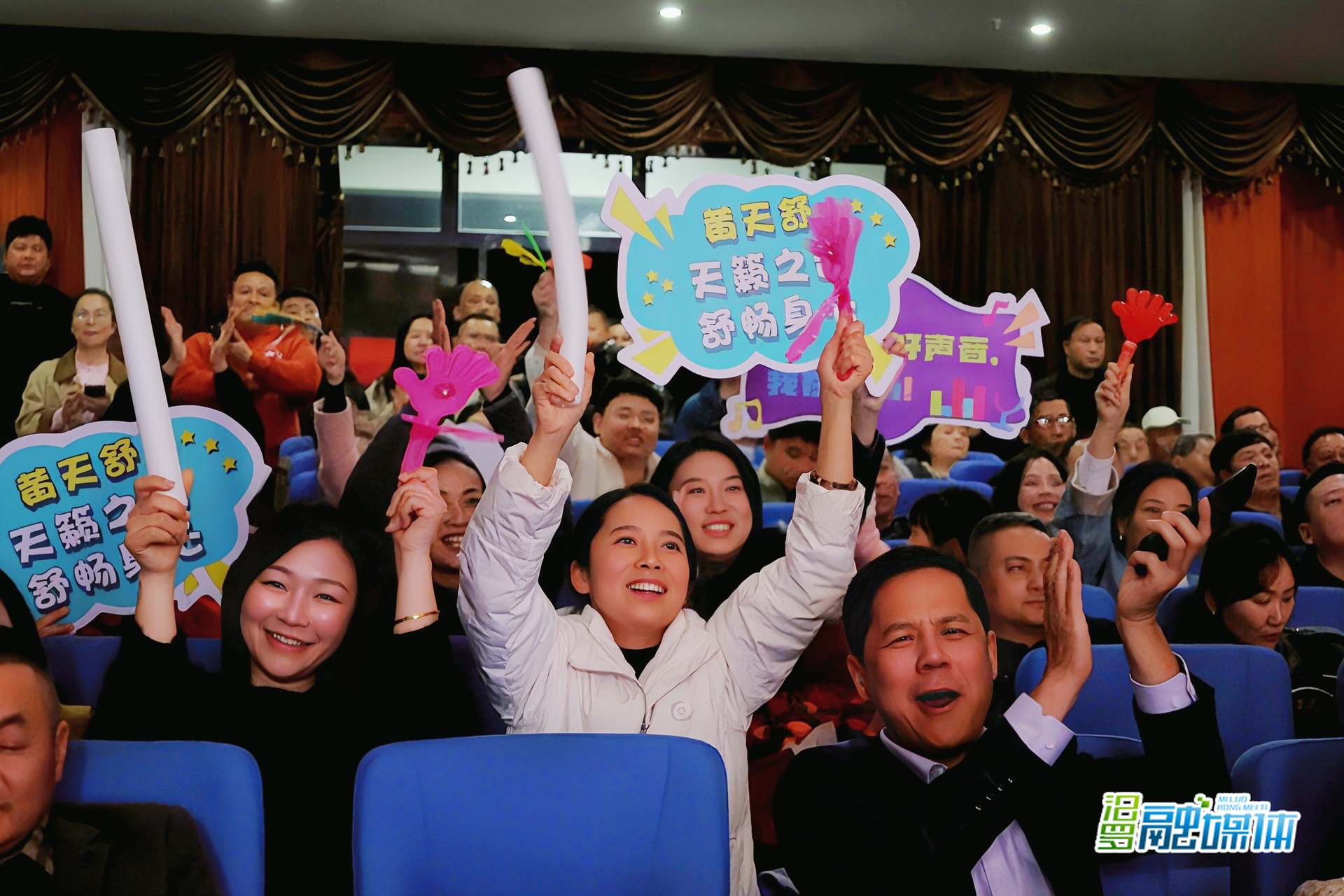 当晚现场座无虚席,观众手持荧光棒与助威牌,化身热情“粉丝团”。选手登台时,所属企业方阵纷纷高举定制灯牌,随旋律齐声助威。决赛中,黄天舒演唱《假如爱有天意》时,台下“天籁之音,舒畅身心”的标语形成一片灯海,引发全场热烈回应。