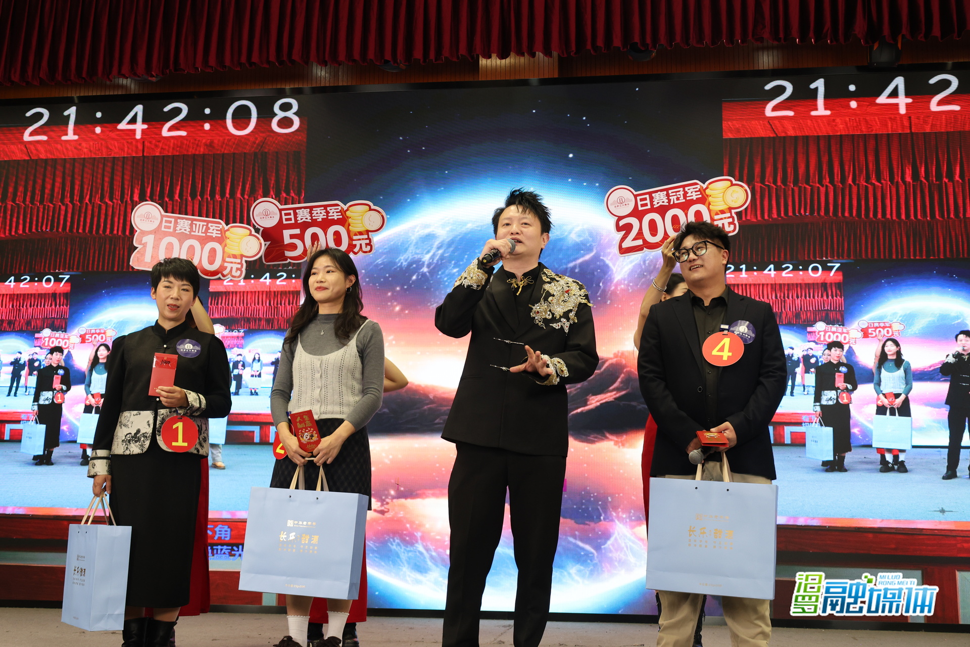 汨罗融媒体讯(记者 周小珺)11月27日晚,汨罗江大舞台“想唱你就来”企业专场歌唱比赛火热开唱。来自楚之晟集团与文旅集团的12名选手同台竞技,经过多轮激烈角逐,楚之晟集团选手黄天舒脱颖而出,一举夺得冠军并获评“人气王”。文旅集团选手李觅、许汨分获亚军、季军。