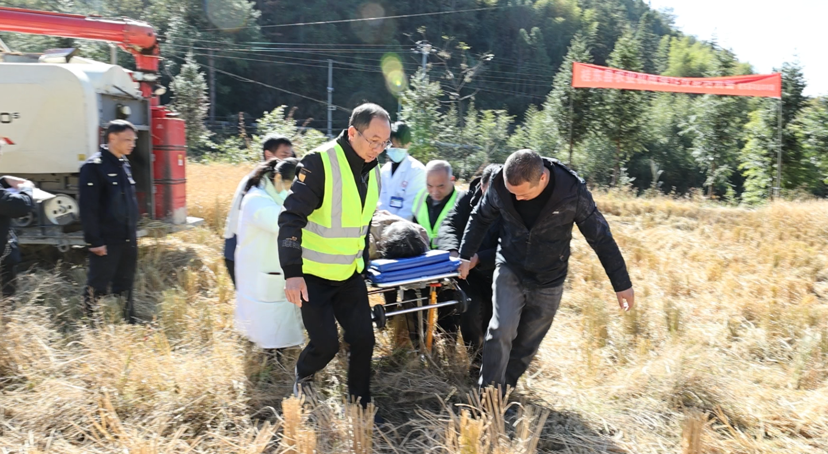 桂东县融媒体中心11月28日讯(记者 邓敏)11月28日,县农业农村局先后在寨前镇、大塘镇组织开展农机事故应急演练,进一步筑牢安全生产防线,保障农机作业安全与群众生命财产安全。