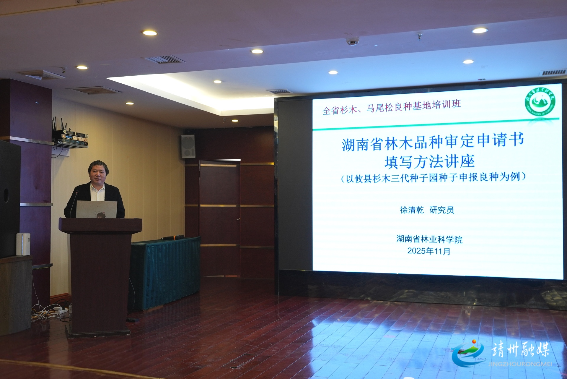 靖州融媒11月28日讯(记者 钦苏芬 通讯员 陈历军)11月28日,中央财政林业科技推广示范项目“杉木大径材高效培育技术推广示范”“杉木新一代良种推广示范”培训班在靖州苗族侗族自治县武陵城酒店举办。全省各地林木良种基地负责人、技术骨干齐聚一堂,通过专家授课、现场观摩、交流研讨等形式,聚焦林业科技推广核心任务,着力提升全省林木良种基地建设水平。
